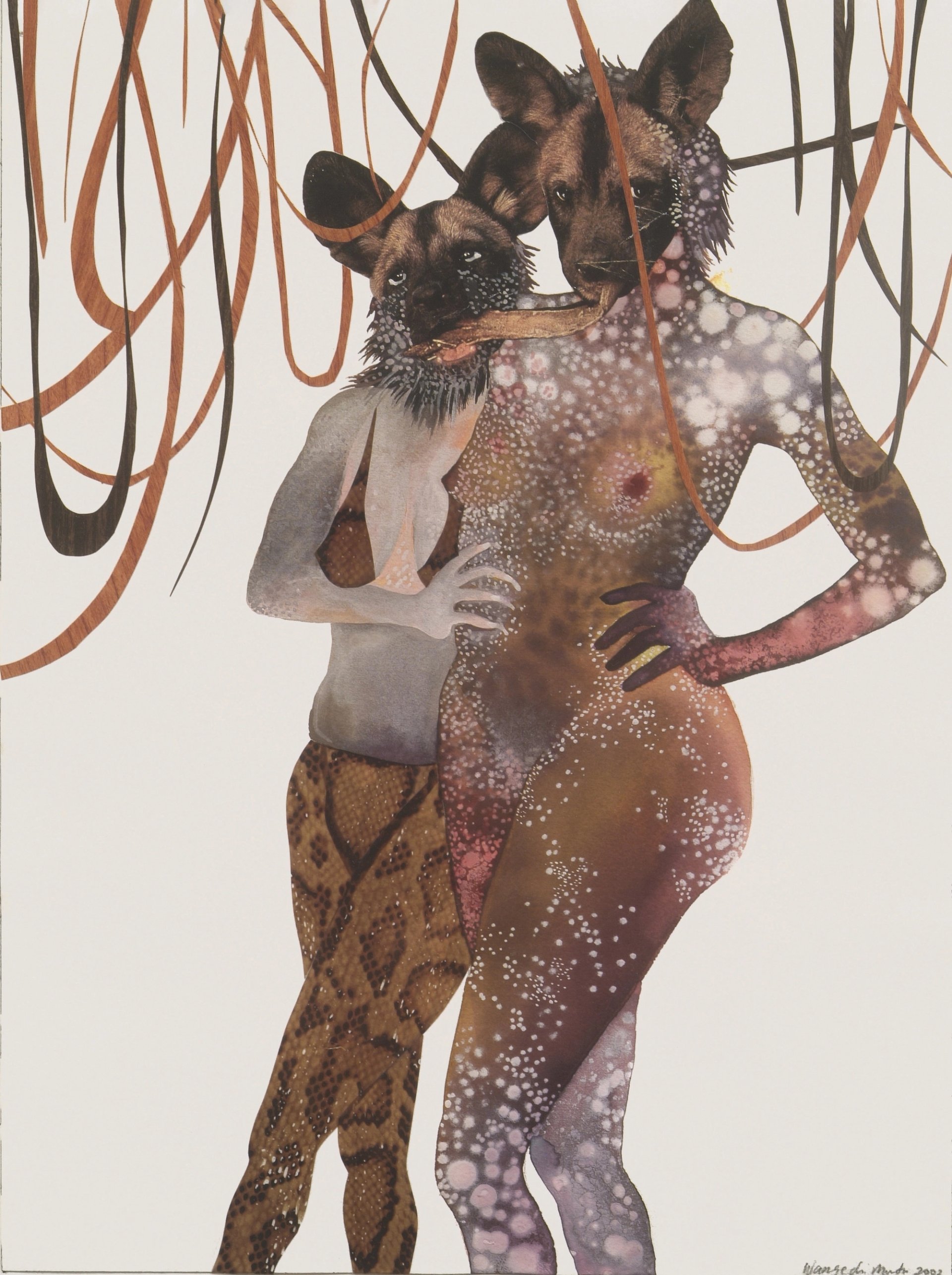 The exhibition takes its name from Mutu’s watercolour collage Intertwined (2003) Photo: Robert Wedemeyer. Minneapolis Museum of Art, gift of Mary and Bob Mersy; courtesy of the artist and Vielmetter, Los Angeles