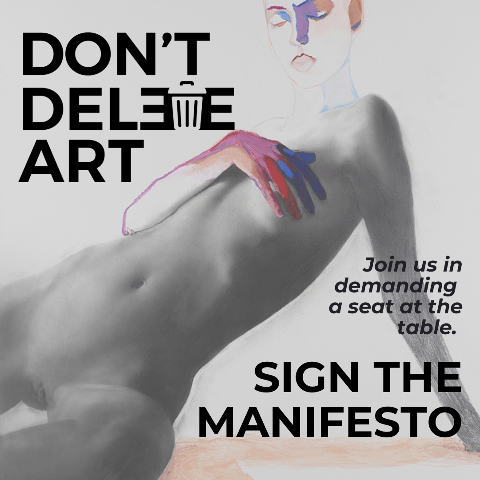 The Don't Delete Art manifesto announcement, over an image by the artist Tiffany Cole Courtesy of Don't Delete Art and Tiffany Cole