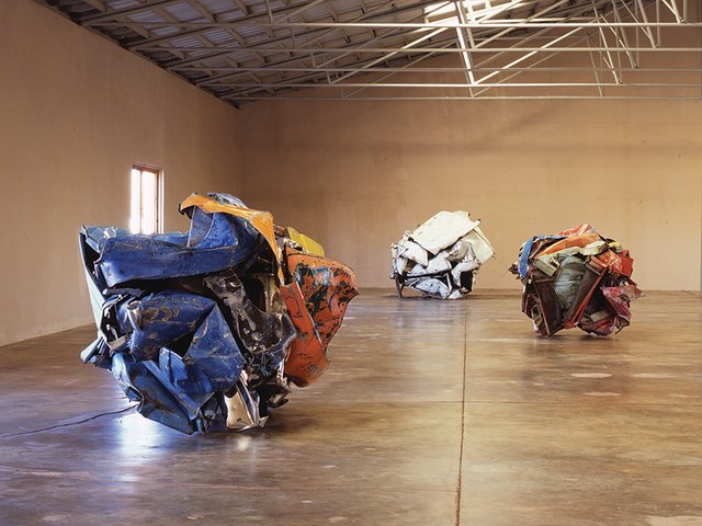 Last year, Marfa’s historic district —which contains 11 buildings purchased and repurposed by Judd—was added to the National Register of Historic Places. The designation allows the Chinati Foundation and the Judd Foundation to take advantage of tax credits to offset preservation costs, which recently included a year-long $2.7m restoration of a converted warehouse home to the largest permanent installation of Chamberlain’s work. Rising temperatures in Marfa have threatened the artwork and architecture displayed there.