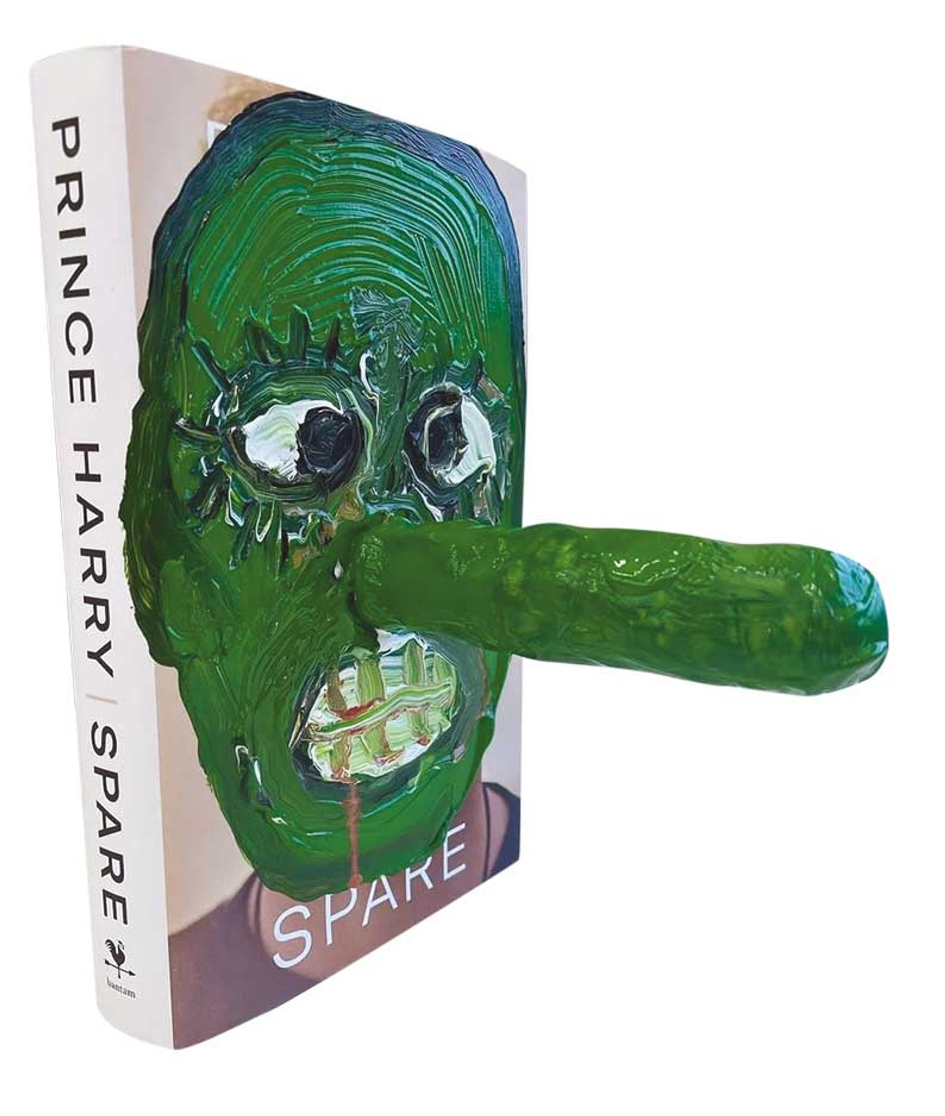 The macabre series of images give a new, rather punchy take on the front cover of the headline-hitting memoir, showing Harry’s face transformed, for instance, under layers of paint, with his eyes gouged out or a hugely elongated nose.