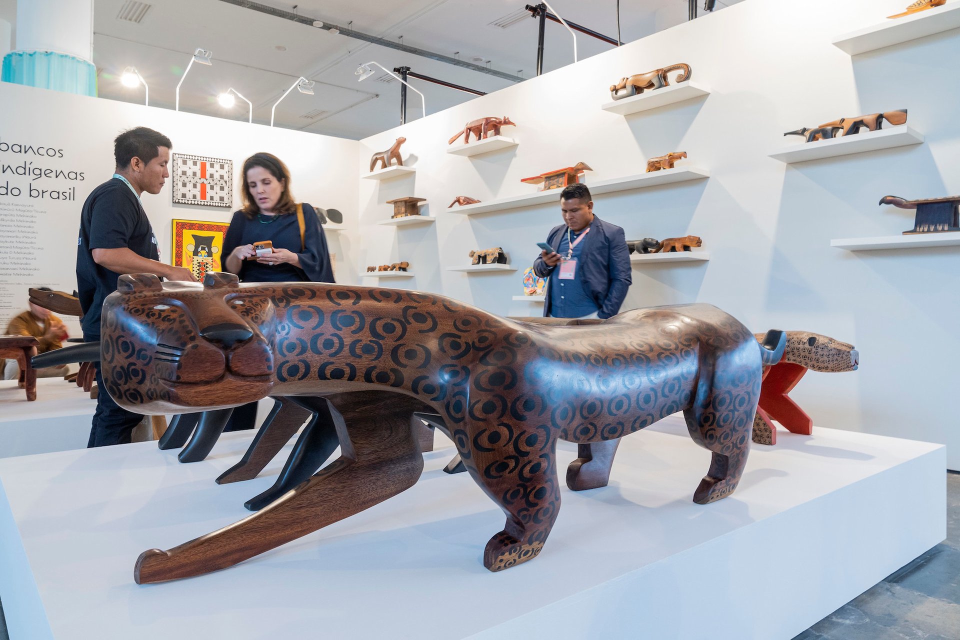 This year’s fair is marked by a 30% increase in design exhibitors, according to Feitosa, and strong representation of Brazilian Indigenous artists. “The Indigenous artists are at full force this year, with artists such as Carmezia Emiliano and Aislan Pankararu,” she says.