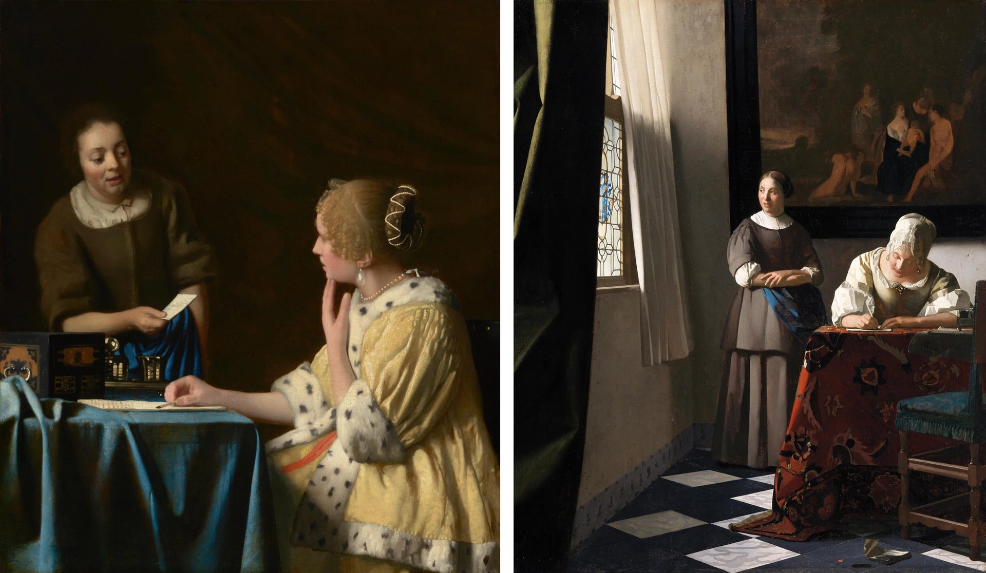 Johannes Vermeer’s Mistress and Maid (1664–67) and Woman writing a Letter, with her Maid (1670–72)