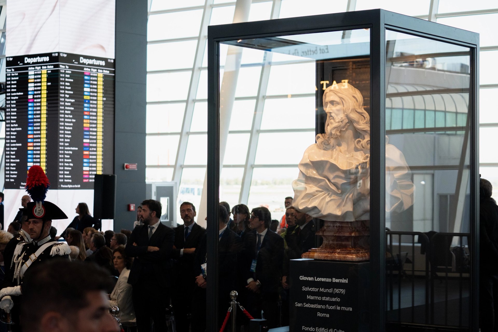 Passengers visiting a swanky new boarding area at Leonardo da Vinci-Fiumicino Airport in Rome will, for the foreseeable future, be greeted by one of Gian Lorenzo Bernini’s most famous sculptural works, Salvator Mundi (around 1679). The marble bust, showing Christ with his hand outstretched, stands in an imposing glass case in the airport lobby (Jesus is no doubt granting benediction to those leaving on flight BA345 to Manchester). The sculptural bust, initially intended as a gift for Queen Christina of Sweden, is usually on show in a church in Rome (the Basilica of San Sebastiano) but in a special arrangement with the Italian Interior Ministry, the work will remain on view for around four weeks according to local press reports. “The display is part of the more general strategy of the Leonardo da Vinci [airport] to promote local and national art and culture among Italian and foreign passengers,” says an airport statement. According to the News in Germany website: “Next to it, the colourful display boards for the flights flicker, opposite is the restaurant chain Eataly."