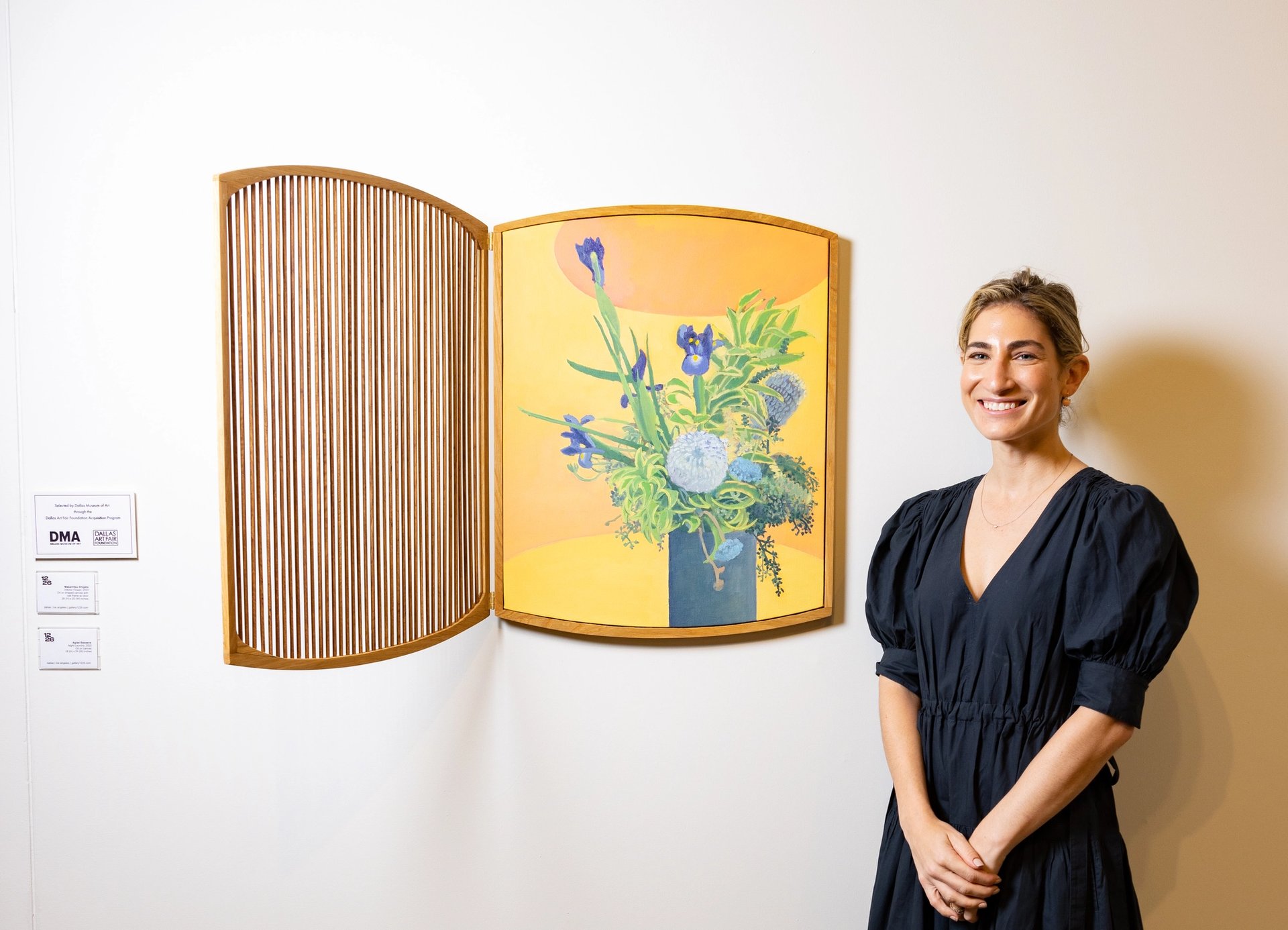 Hannah Fagadau, co-owner of Dallas-based 12.26 Gallery, pictured next to a work by artist Masamitsu Shigeta acquired by the Dallas Museum of Art through the Dallas Art Fair Foundation Fund. Courtesy the Dallas Art Fair