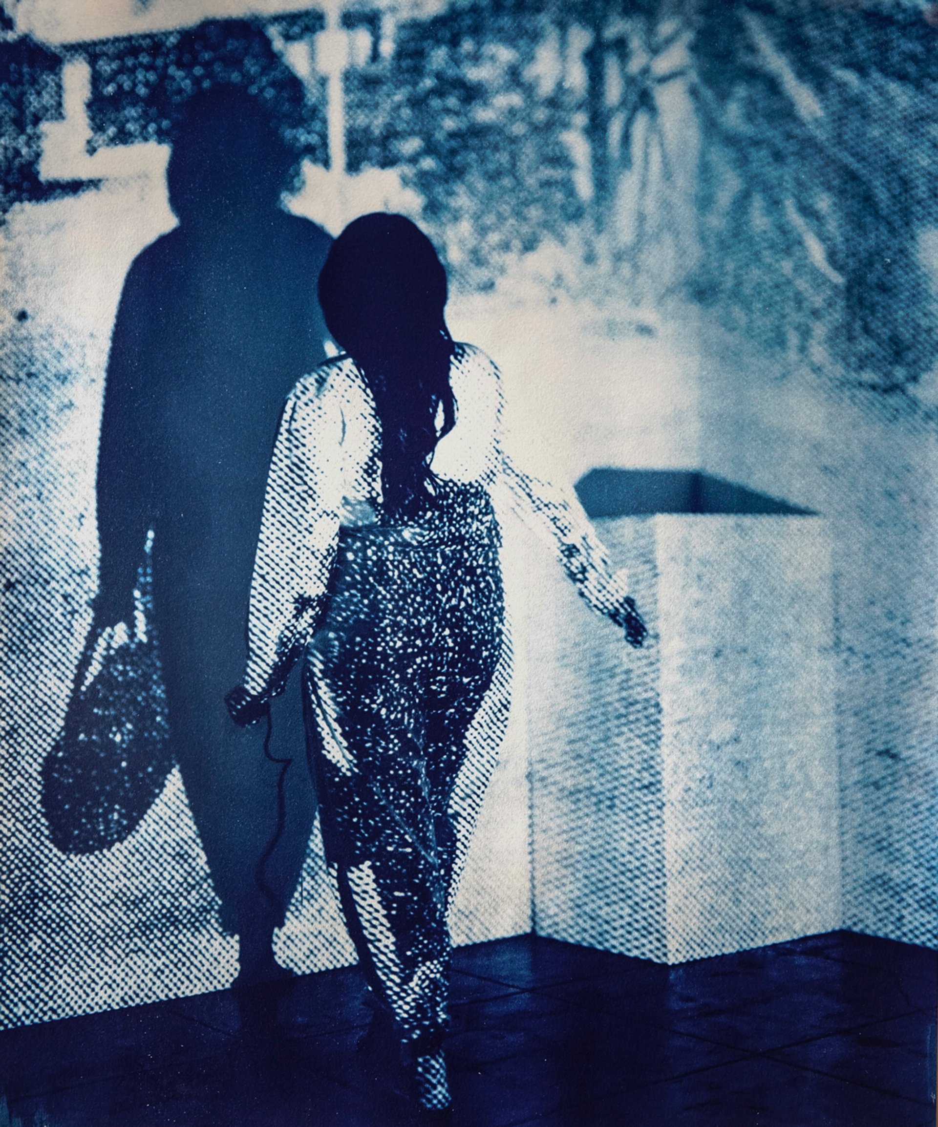 Tarrah Krajnak's Self Portrait as Walking Woman with Bag, 1979 Lima, Peru 2019 Los Angeles, CA, from the series 1979 Contact Negatives (2019–22) © Tarrah Krajnak