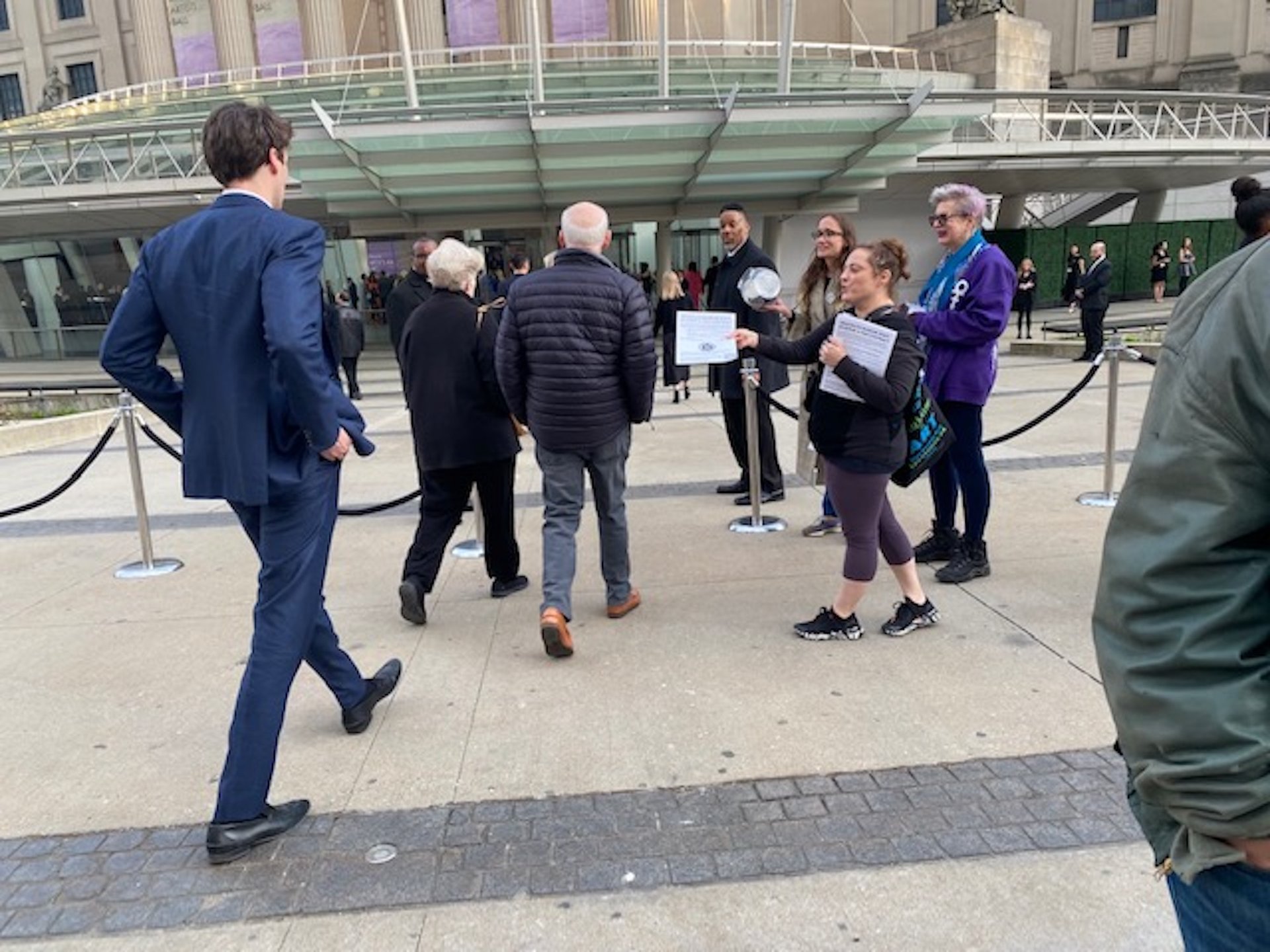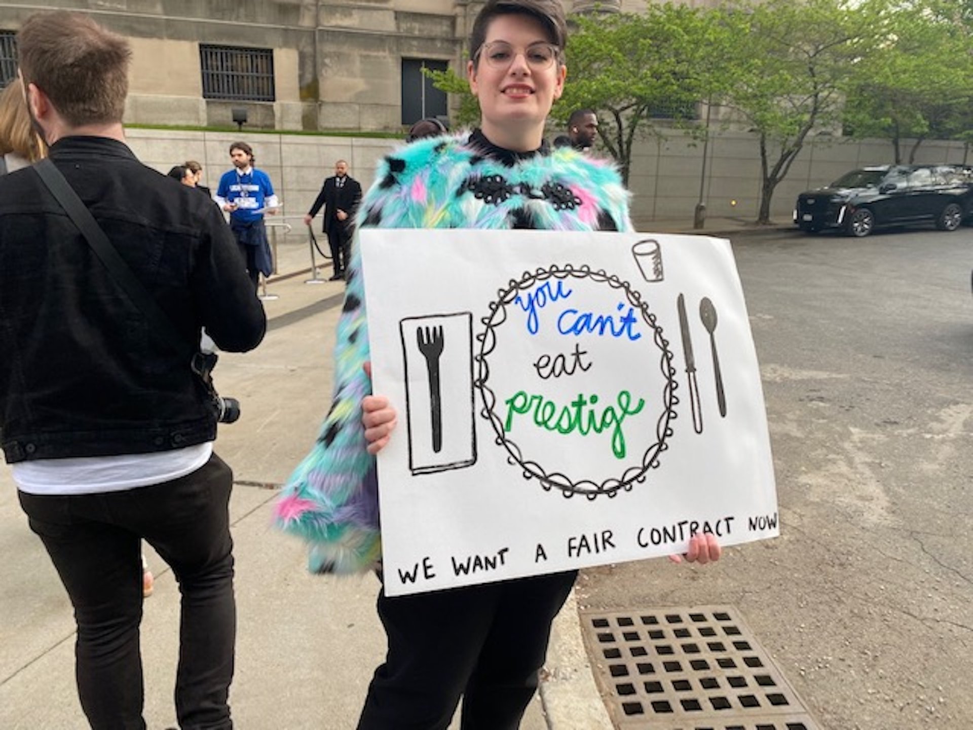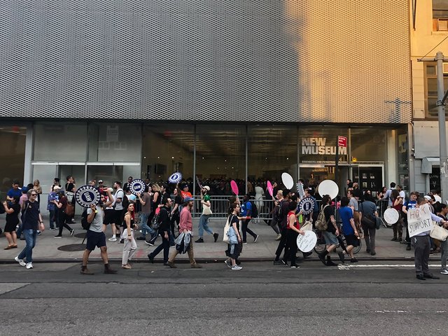 Members of the Brooklyn Museum union rally outside its annual fundraising gala on 25 April Anni Irish