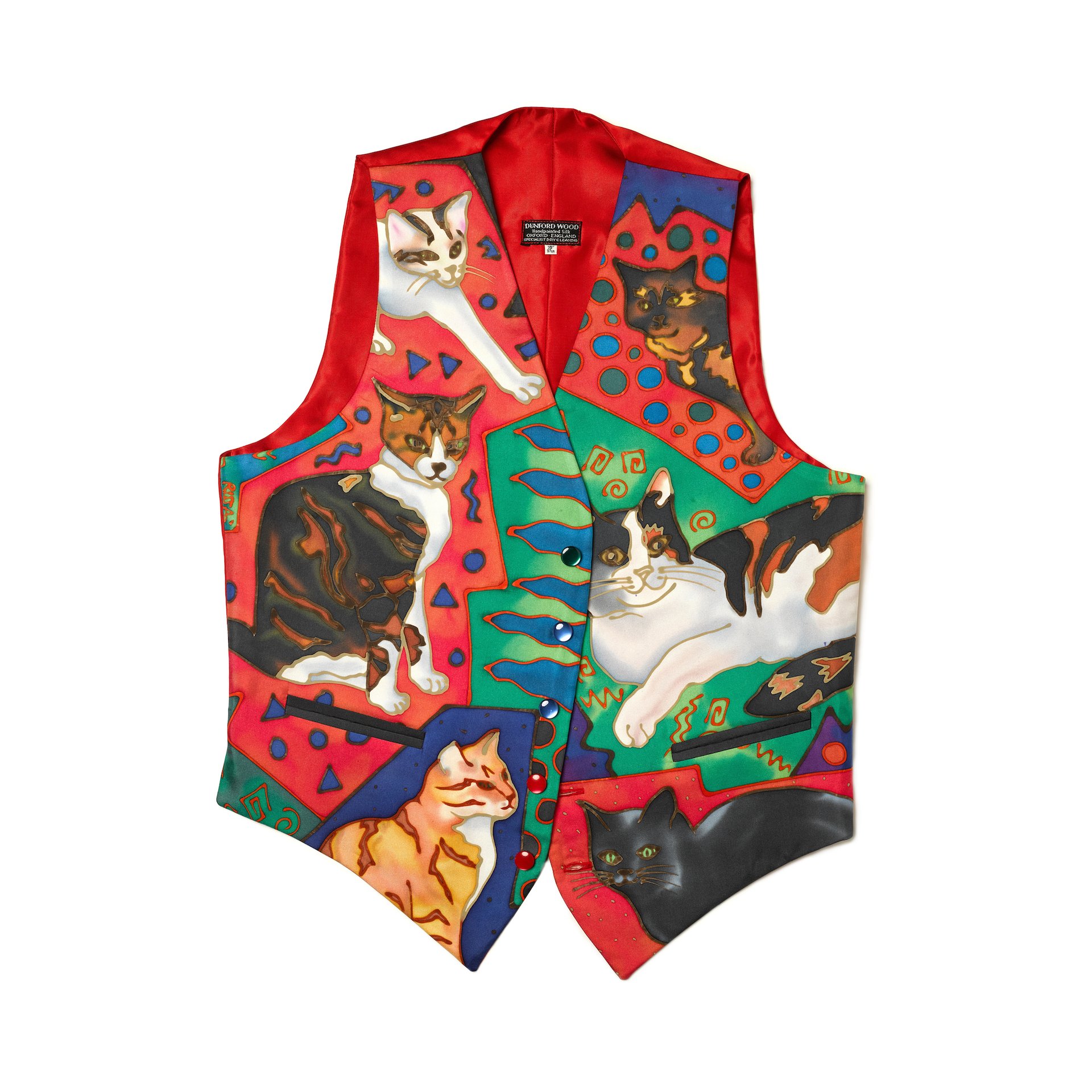 A feline-filled silk waistcoat by Dunford Wood that was reportedly Freddie Mercury's favourite waistcoat Courtesy Sotheby's