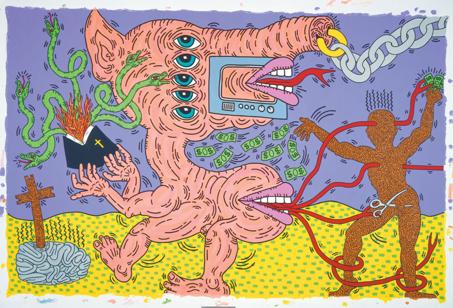 Scharf tells The Art Newspaper: “The kind of culture that Keith was embracing, no one was doing that back then—opening his Pop Shop [a New York boutique selling affordable merchandise], and the idea that art was for everyone. We took a lot of flak for wanting to really express that attitude because a lot of people back then, and still [today], think that art for everyone meant art dumbed down.”