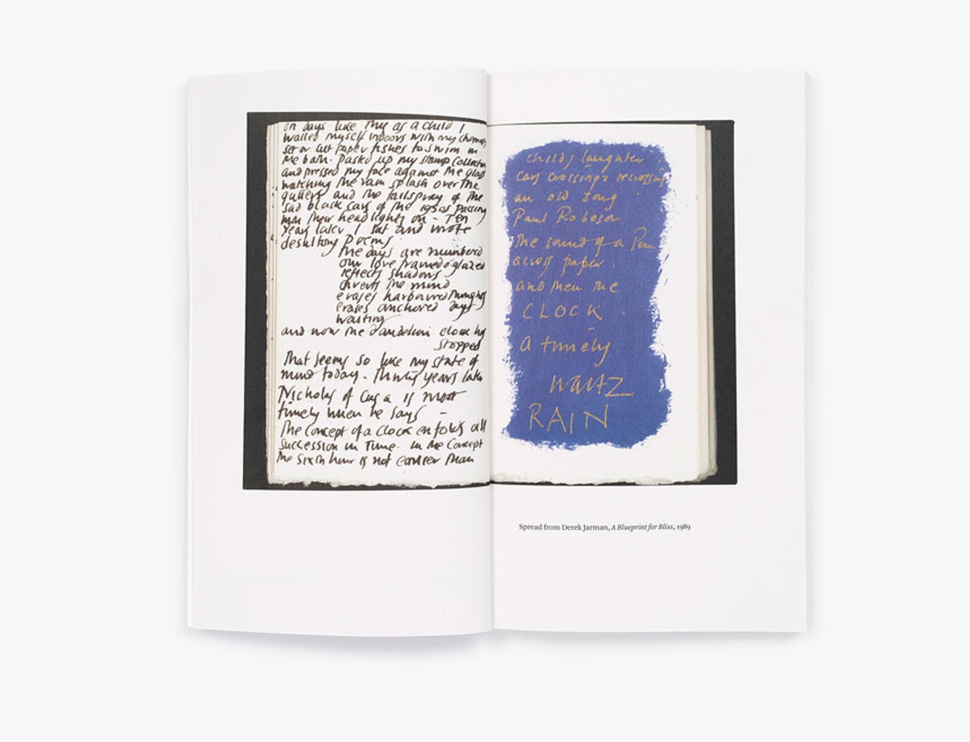 A spread from Blue (2023) by Derek Jarman Photo: Madison Carroll; Courtesy David Zwirner Books