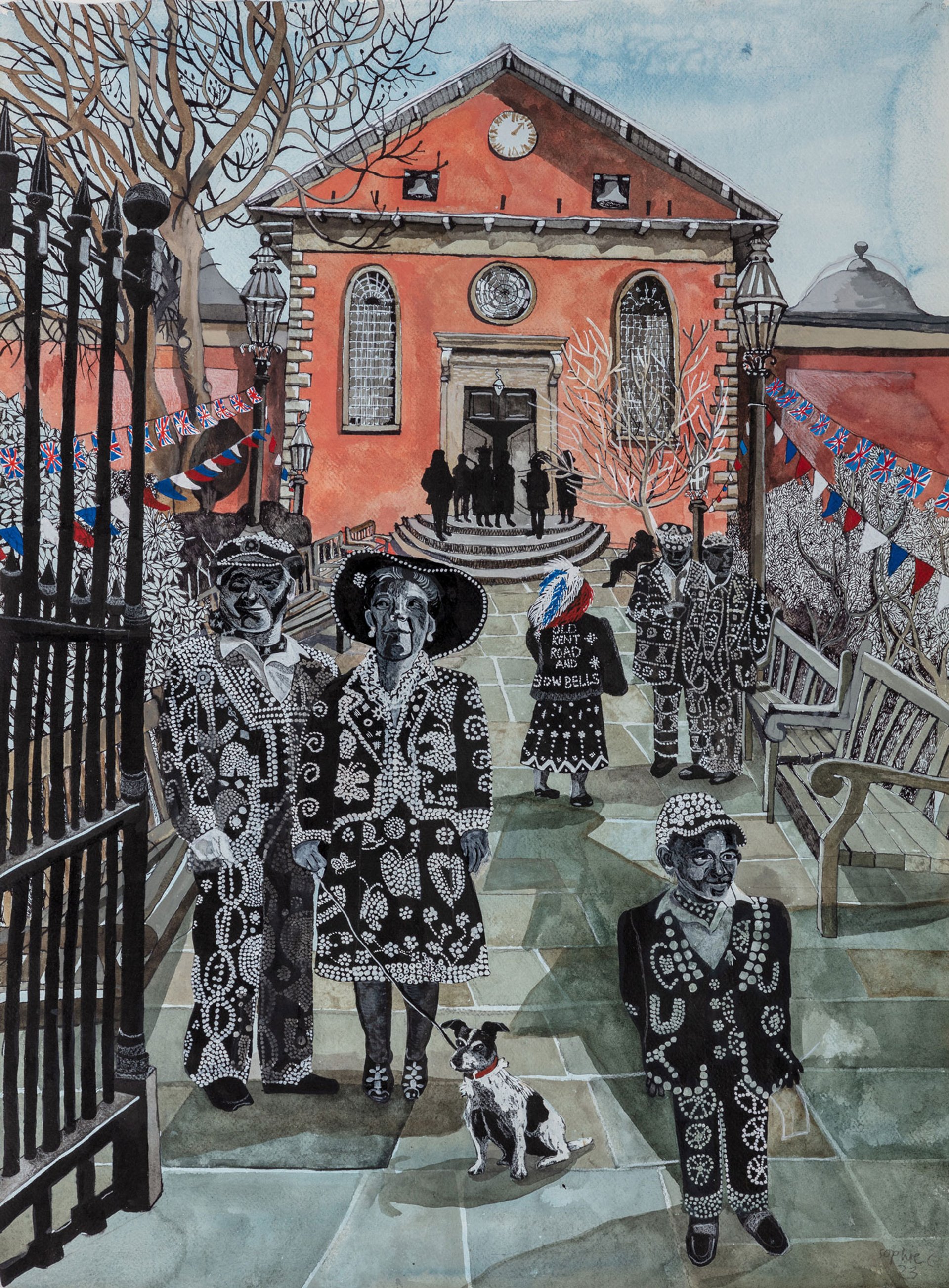 Sophie Charalambous,The Pearly Kings and Queens Pageant (2023). One of the coronation commissions from Royal Drawing School's Drawing Year alumni. Limited-edition prints of the painting are on sale in aid of the course's scholarship fund Courtesy Royal Drawing School