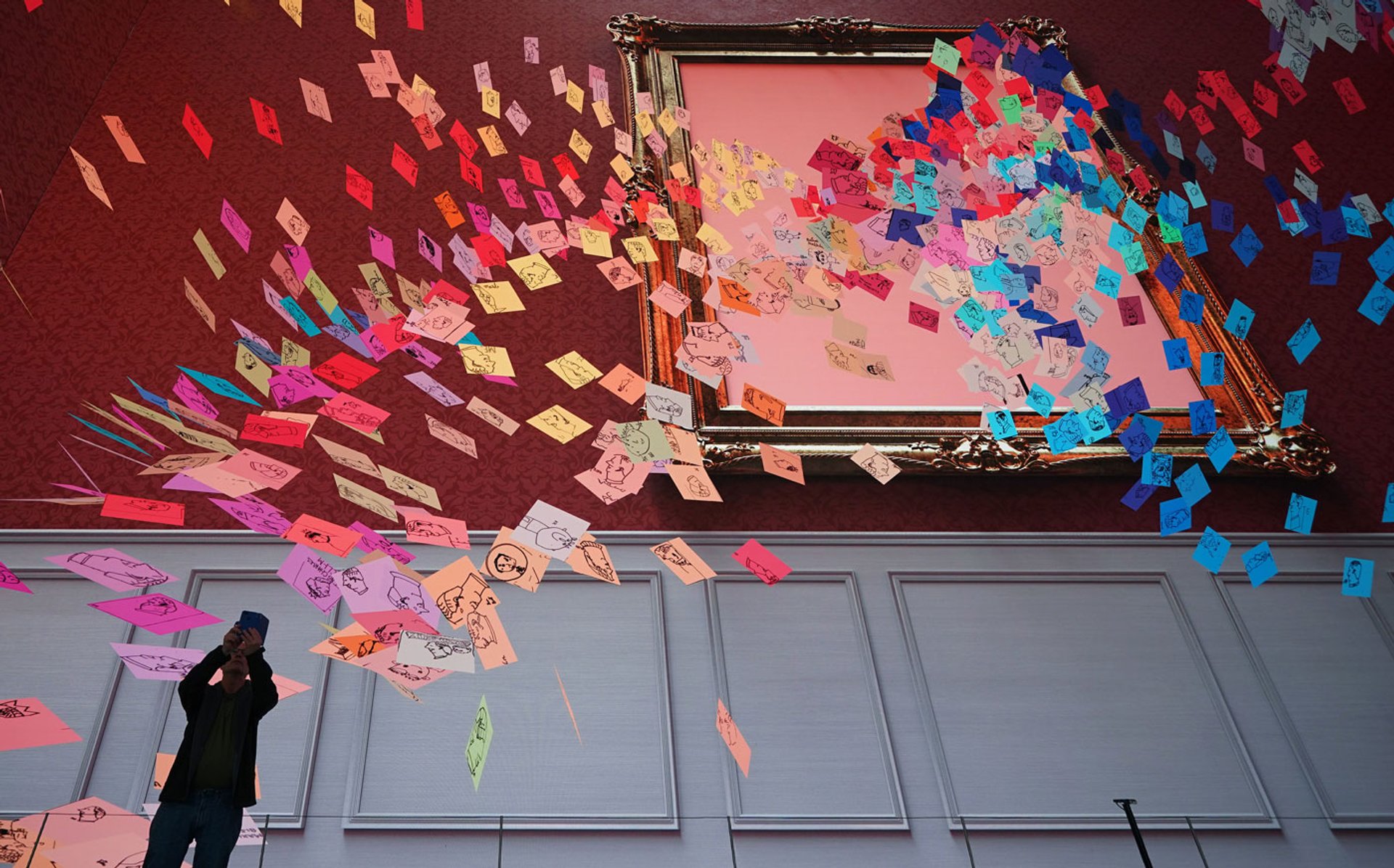 The immersive video of The Royally Great Portrait at Outernet, in London, shows some of the 11,000 submitted drawings coming together to form the finished image Yui Mok/PA Wire