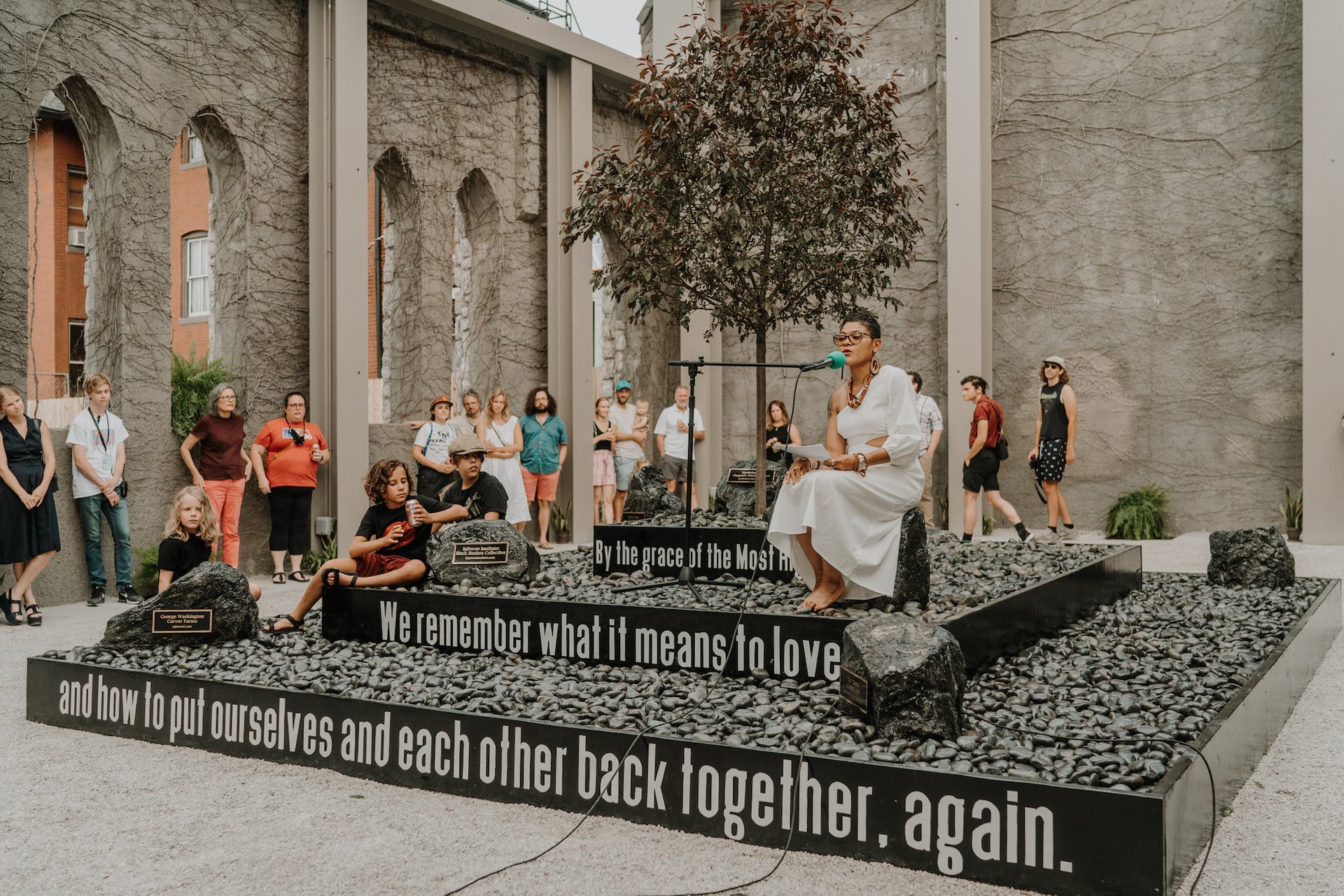 Included is a regenerative earthwork by Jordan Weber. Serving as a community gathering space and a rainwater garden, the earthwork purifies the soil and raises awareness about the importance of stormwater management systems in protecting land and people. Weber’s project reflects the civic focus of Counterpublic, whose organisers set out to ensure the exhibition’s presence in the city is not one of occupation or spectacle, but rather supports tangible, permanent change.