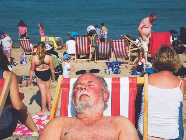 Downstairs, in the larger of Somerset House’s two Embankment Galleries, one can find a partial retrospective of the work of Martin Parr, the anointed Master of Photography for 2023. Few could claim Parr does not deserve such an accolade—Benson described him as “the Godfather of photography” when introducing the show. He has photographed the British isles for more than 50 years, creating what he calls an “inventory of the nation”.