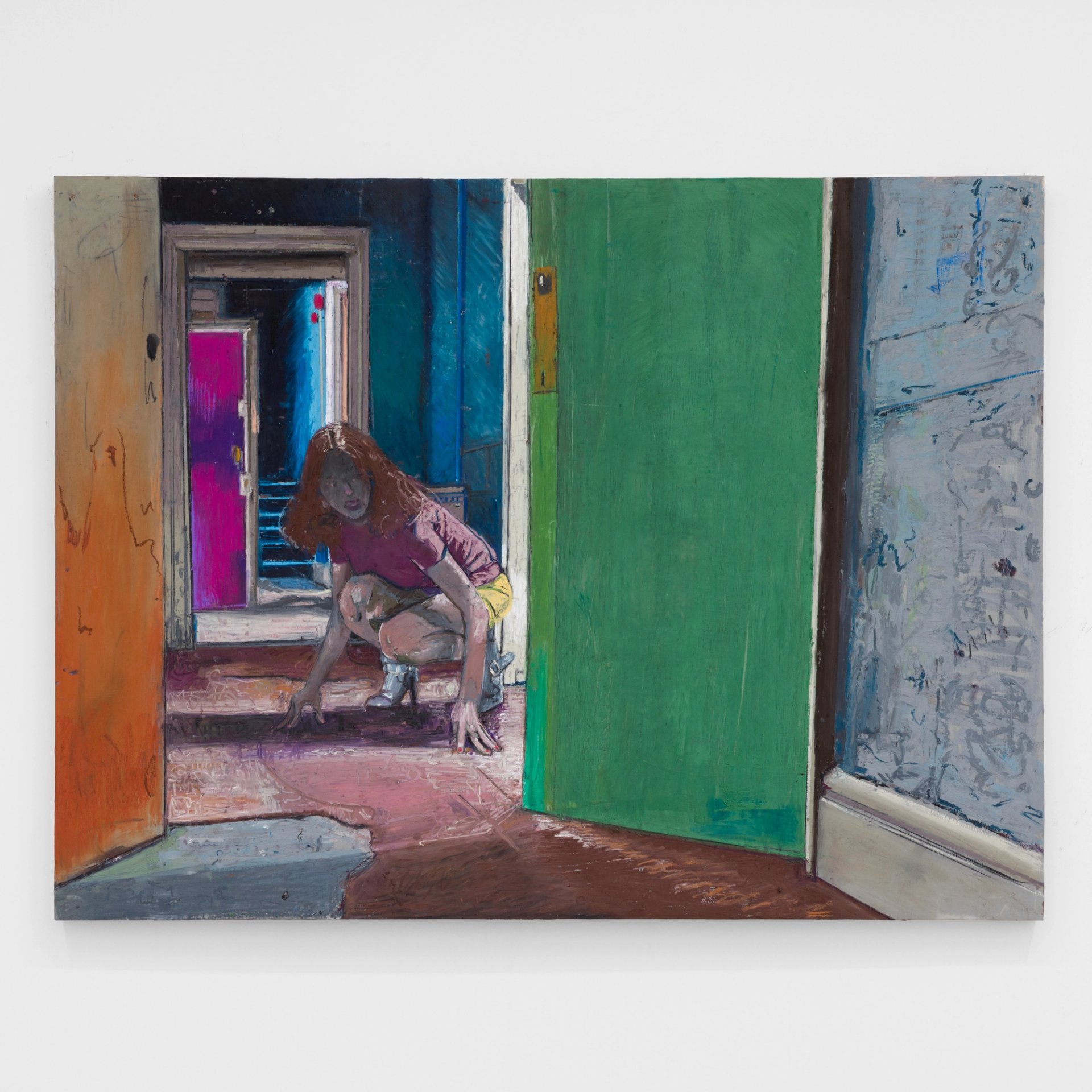 “She’s inspired by the interstitial spaces in a home, really informed by a sense of American horror,” says Alec Petty, founder of New York gallery King’s Leap, which is offering Uckotter’s uncanny compositions for prices in the $13,000 to $18,500 range. “A lot of the figures are less self-portraits than dolls or mannequins that she can put gestures on top of, that she can control at her will. She’s playing with ideas of prescription femininity and the way in which these figures might be the ones being pursued or the ones in pursuit.”