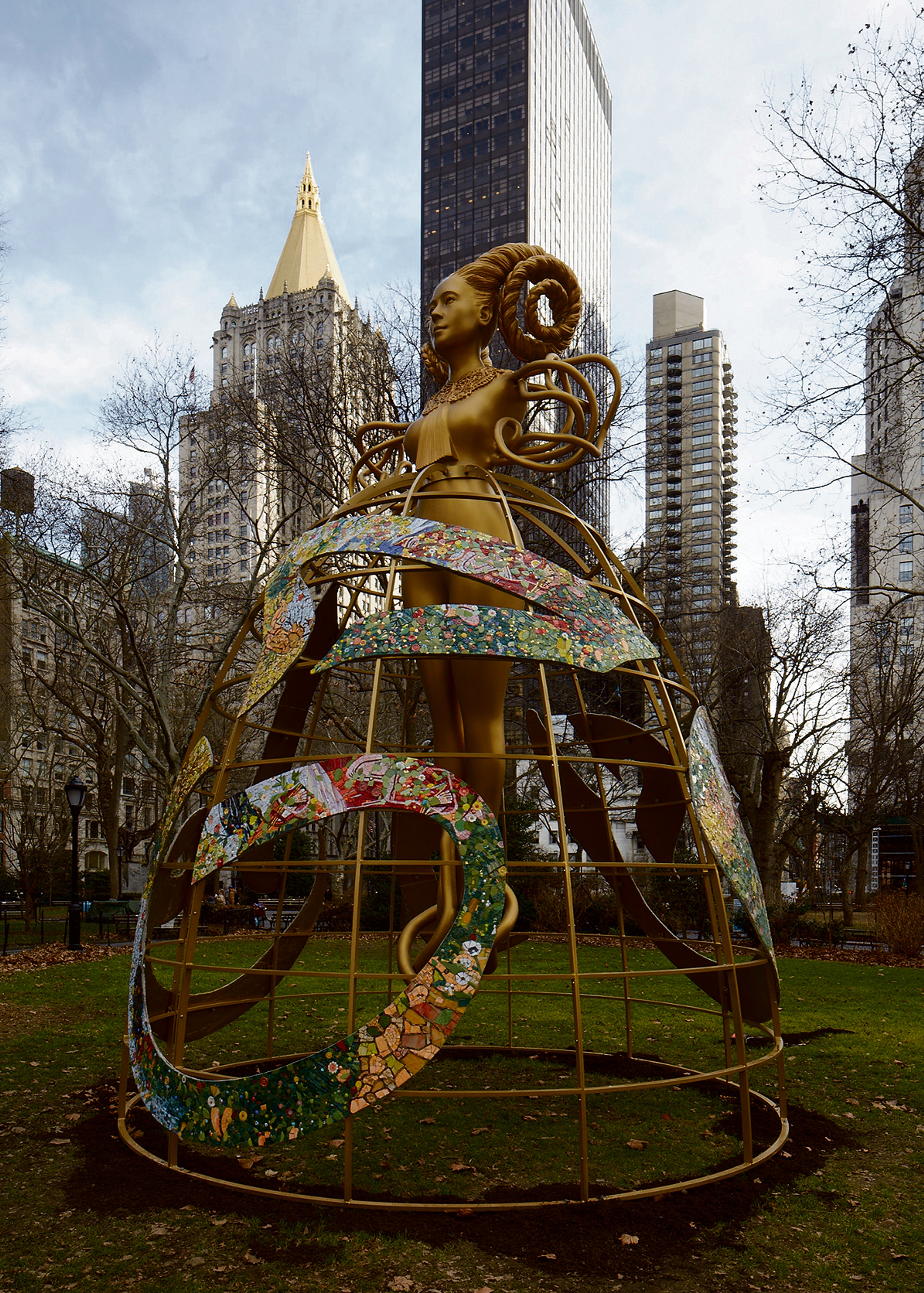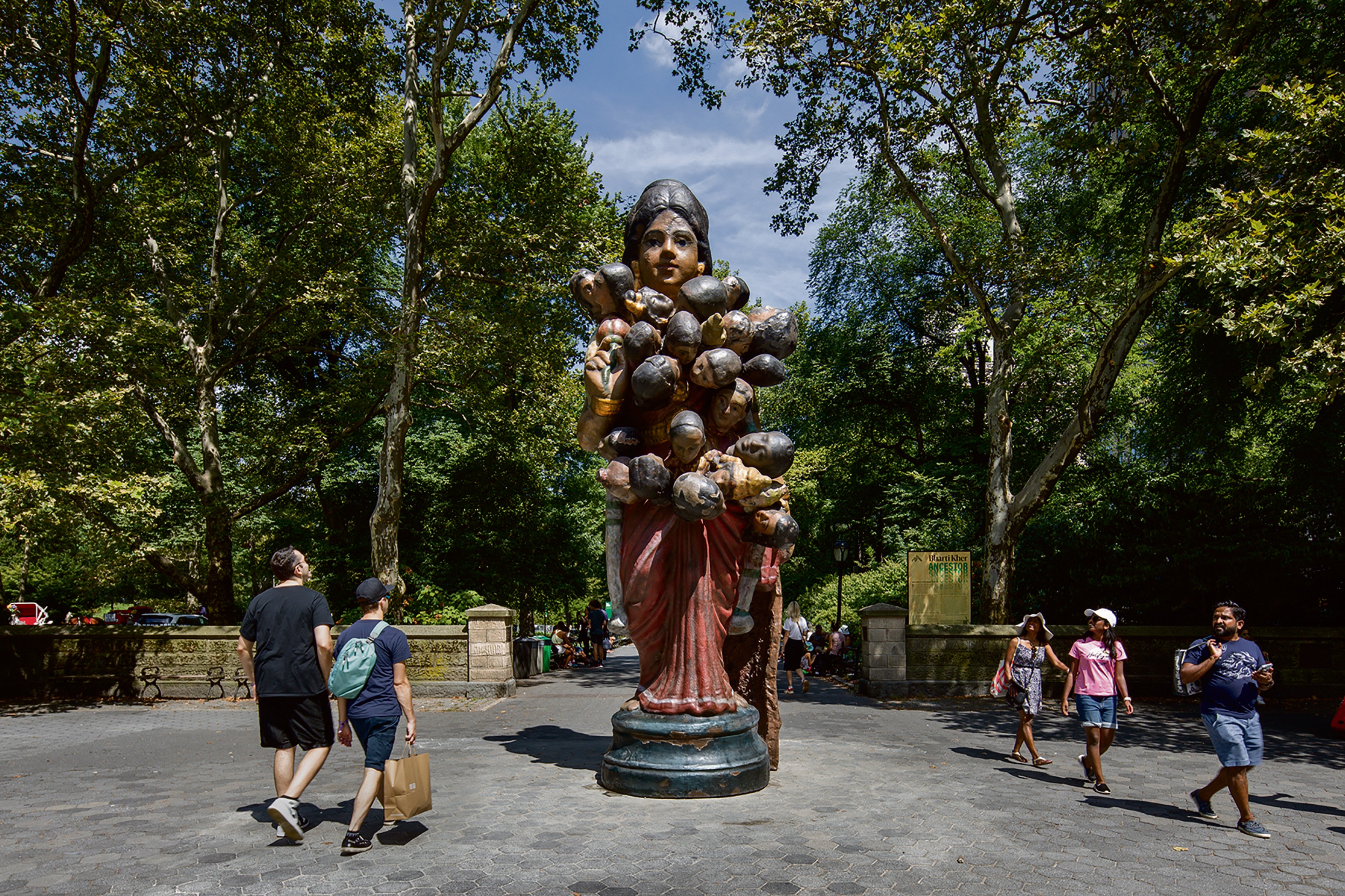 At the south-east corner of Central Park, in Doris C. Freedman Plaza, the artist Bharti Kher has erected an 18ft-tall female figure, Ancestor (2022), which represents both a universal matriarch and a miniature figurine Kher found at a secondhand market in India.