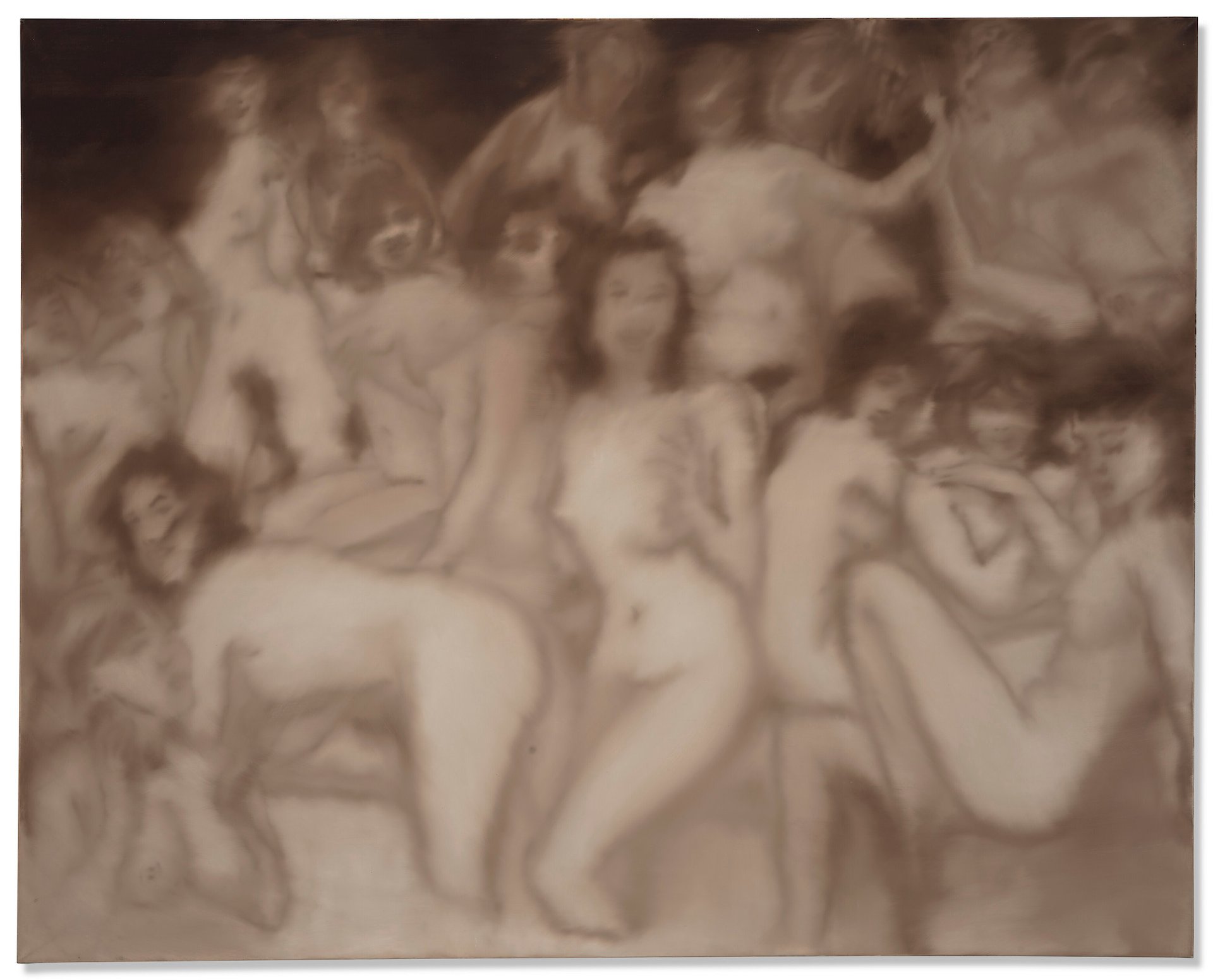 Another star lot and just as challenging, Gerhard Richter’s large-scale painting Badende (Bathers) (1967)—depicting a group of nude female figures in a blurred, sepia composition—made $8m ($9.6m with fees), a far cry from its estimate of $15m to $20m. The painting, from German artist’s storied series of bathers, was first shown in Munich at Galerie Heiner Friedrich in 1967. Fineberg acquired it 20 years later from New York dealer David Nolan.