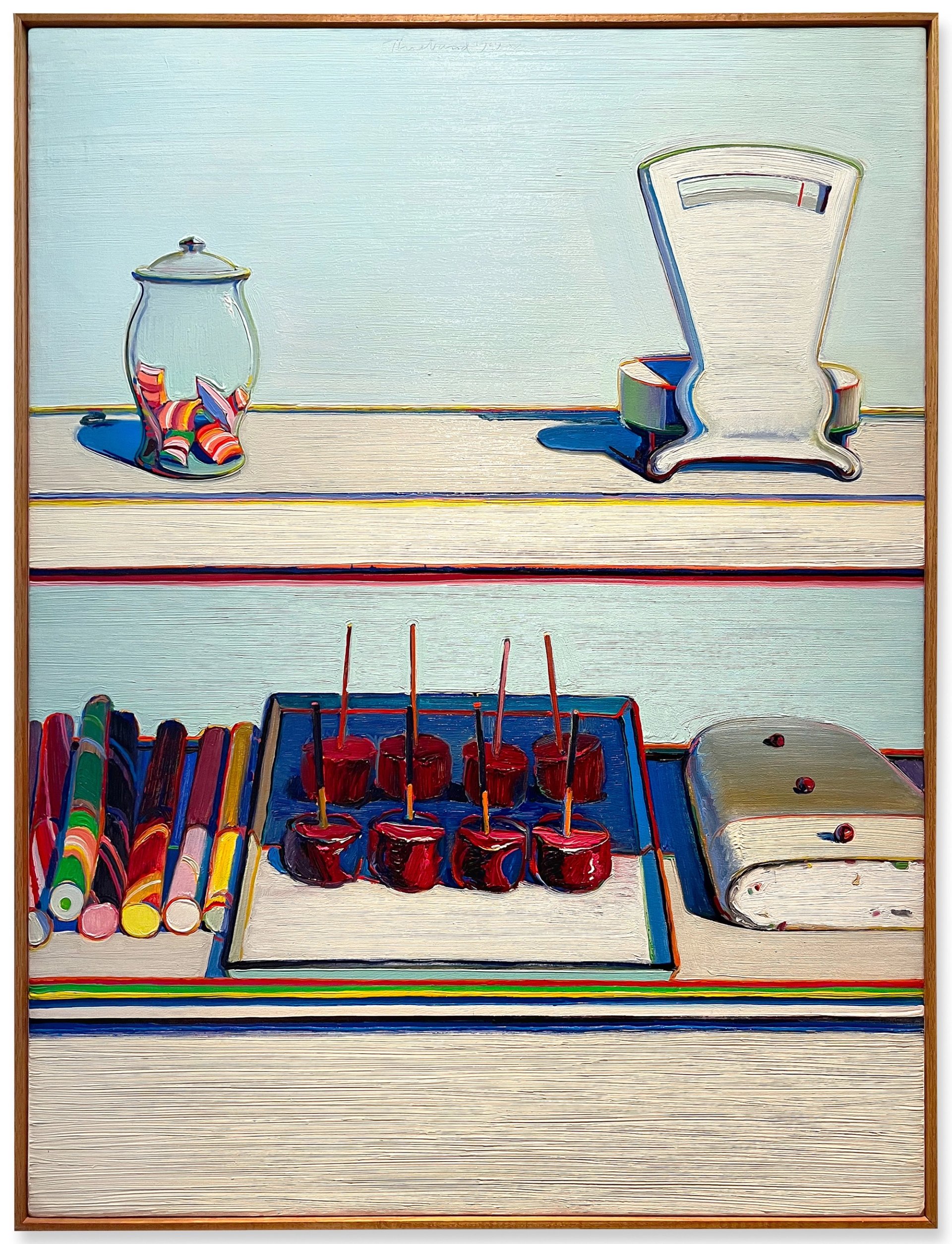 Back to the figurative front, Wayne Thiebaud’s caloric and price point high Candy Counter (1969), featured in his 2000 retrospective at the Whitney Museum of American Art, sold for $12.5m ($14.6m with fees, est. $10m-$15m) and Yves Klein’s monochrome body-marked painting, Anthropométrie Sans Titre (1960) went for a reduced $2.1m ($2.6m with fees, est. $3m-$5m).