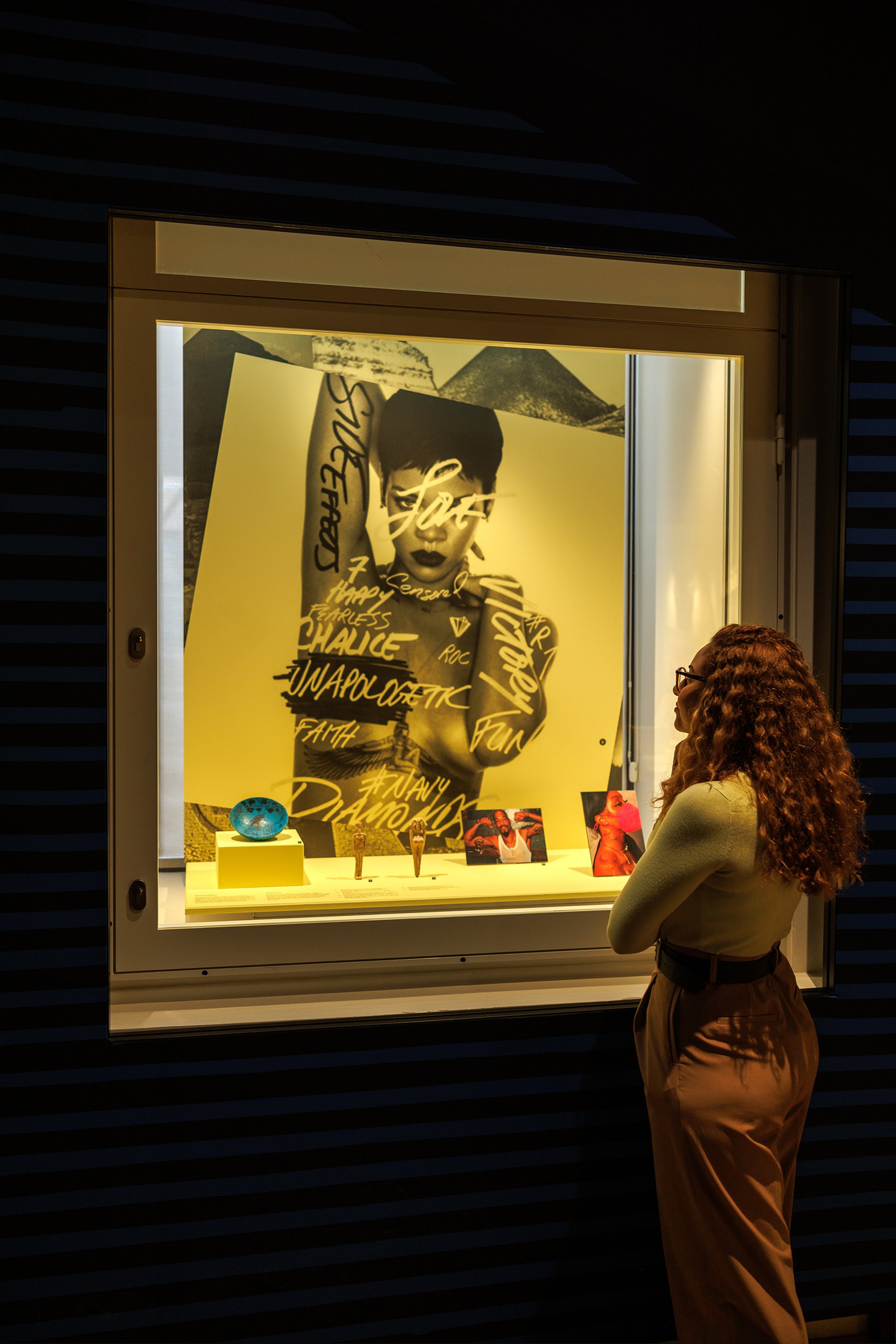 With the help of music, video, interviews and colourful artefacts, the exhibition compares its own pieces such as a wall relief from 640BC with the way that ancient Egypt has inspired Black artists including Erykah Badu, Beyoncé, Rihanna and John Singleton, the maker of Michael Jackson’s Remember The Time video.
