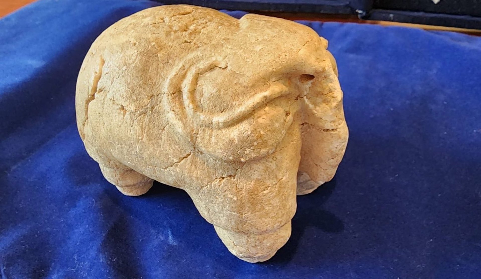 The ancient limestone sculpture of an elephant that was recently returned to Iraqi officials Iraqi Embassy in Washington