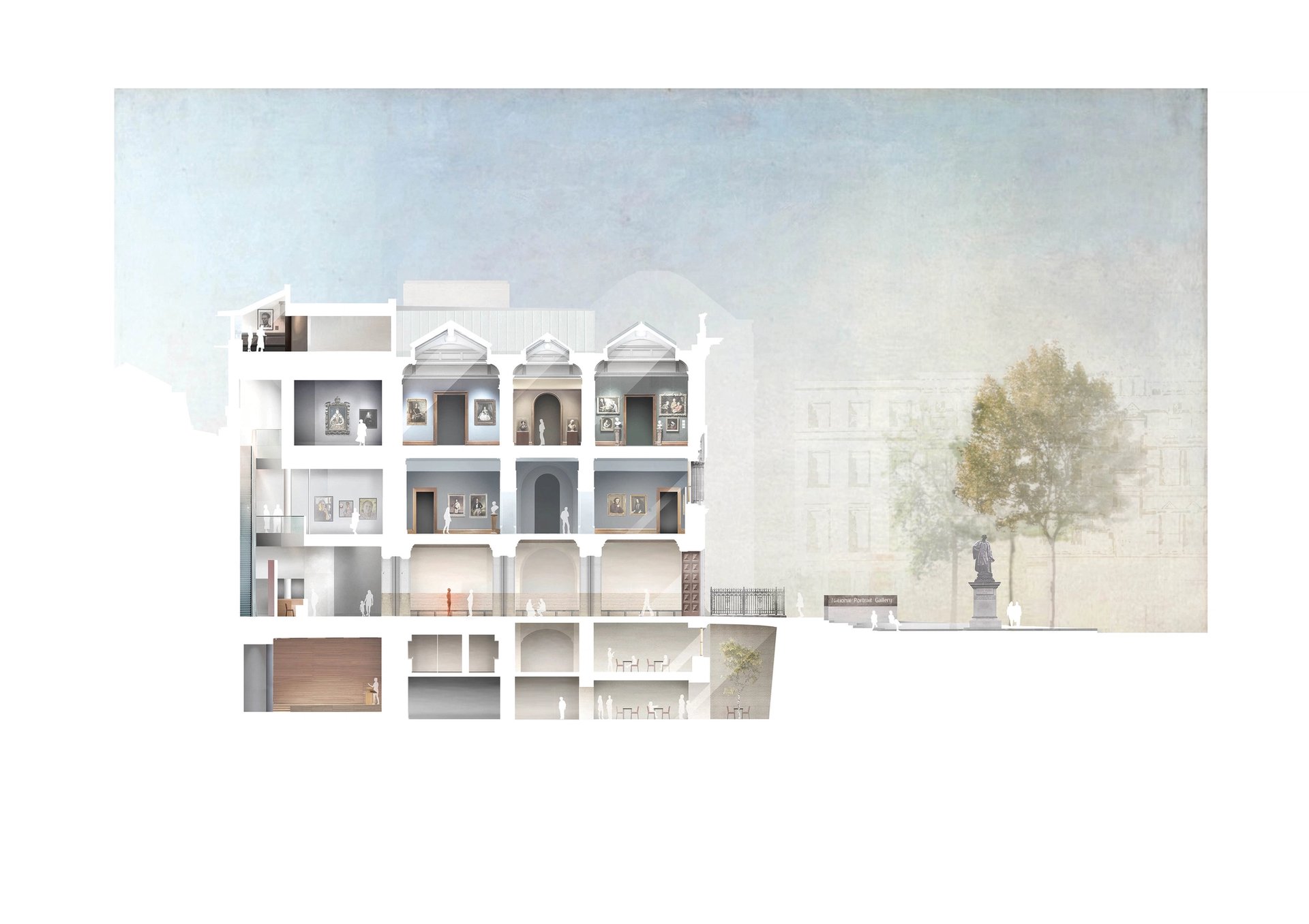 A cross-section rendering of the building, which includes new display areas that had previously been offices © Jamie Fobert Architects