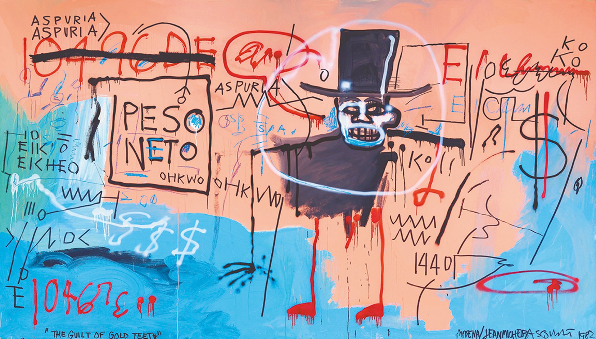 Jean-Michel Basquiat, The Guilt of Gold Teeth (1982) is in the Nahmad Collection © The Estate of Jean-Michel Basquiat / 2022, ProLitteris, Zurich
