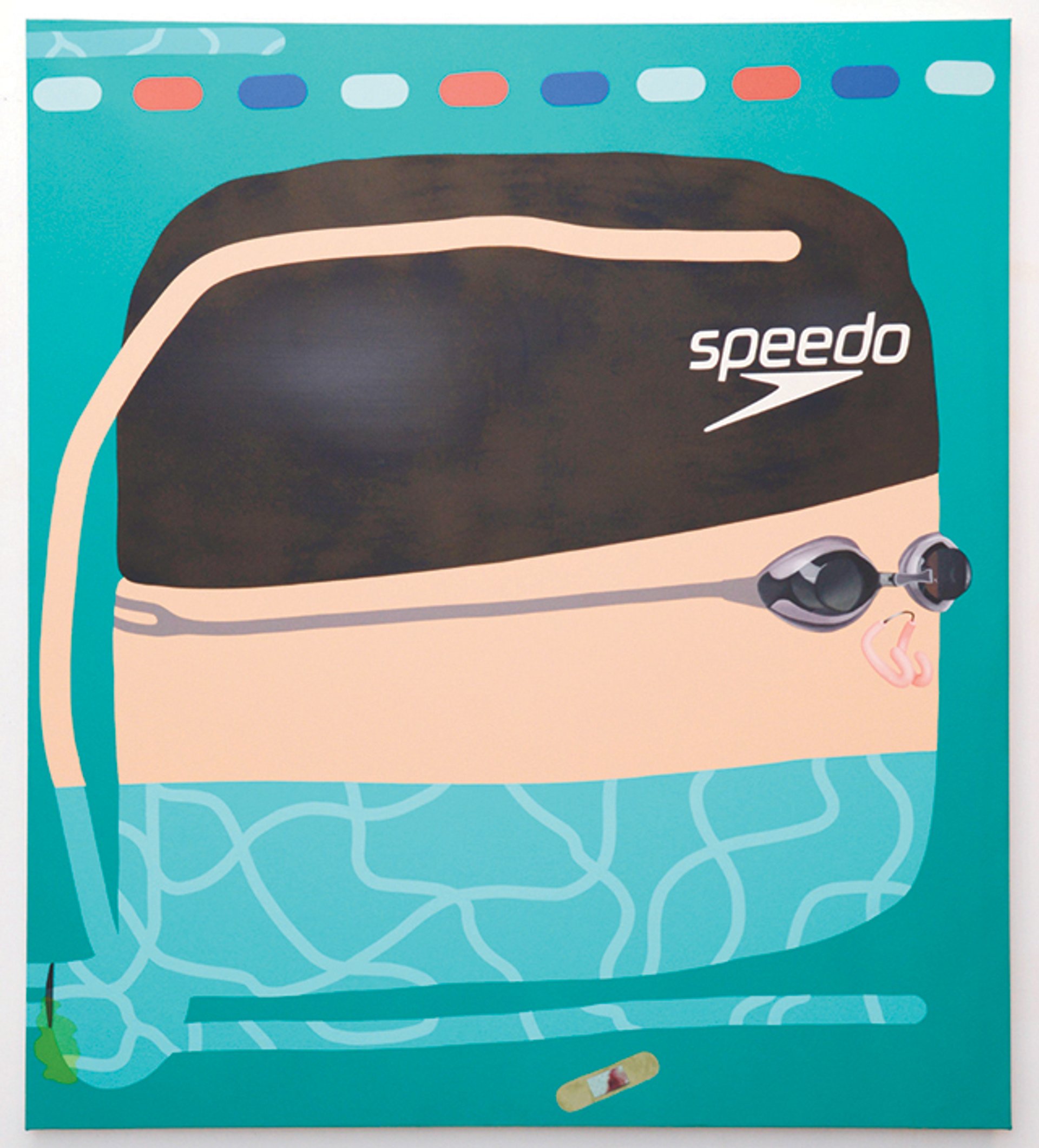 The first work of art I ever purchased was at a flea market in Geneva. It is a Picasso-esque harlequin scene and I have no idea who it is by or where it is from. I still have it up on my wall as, although it has no value, it means a lot to me as my entry into art. My first significant purchase was an Oli Epp painting, Chlorine (2017). He is a London-based painter whose work broadly defines the aesthetic of my collection—digital and playful.