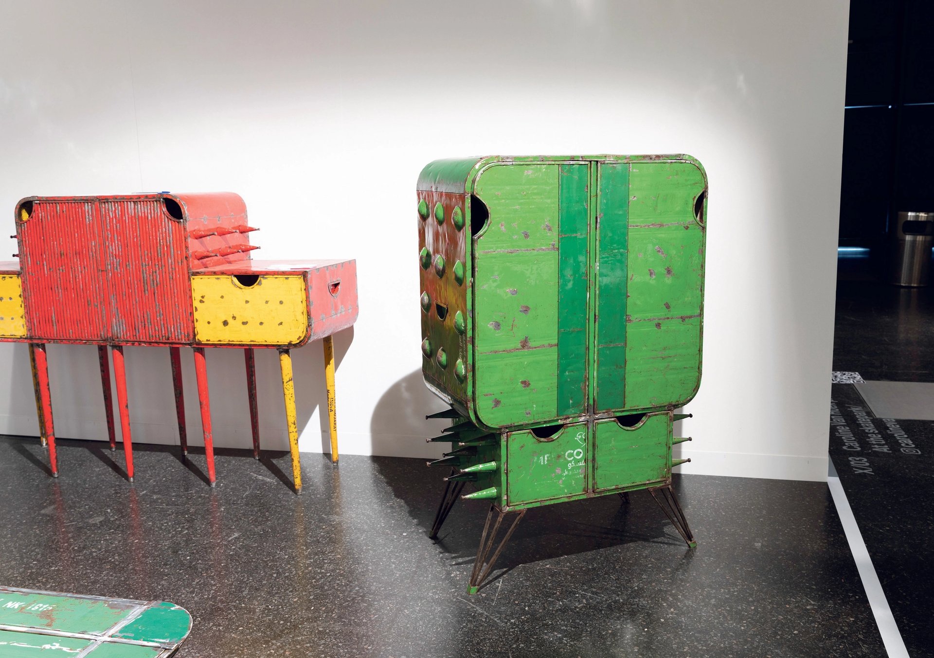 Lausanne-based gallery Foreign Agent was founded by the Swiss Chinese businessman Olivier Chow, a former employee of the Red Cross. The gallery focuses on emerging and mid-career contemporary designers from Africa. Here, it is showing a series called Bolibana by Hamed Ouattara, a furniture designer who runs a studio of apprentices in Ouagadougou, the capital of Burkina Faso. Ouattara’s designs are works of creative salvage, such as these consoles upcycled from colourful oil barrels discarded on the side of the road. Jimena Sougri, a green console, is on sale for SFr30,000 ($33,500).