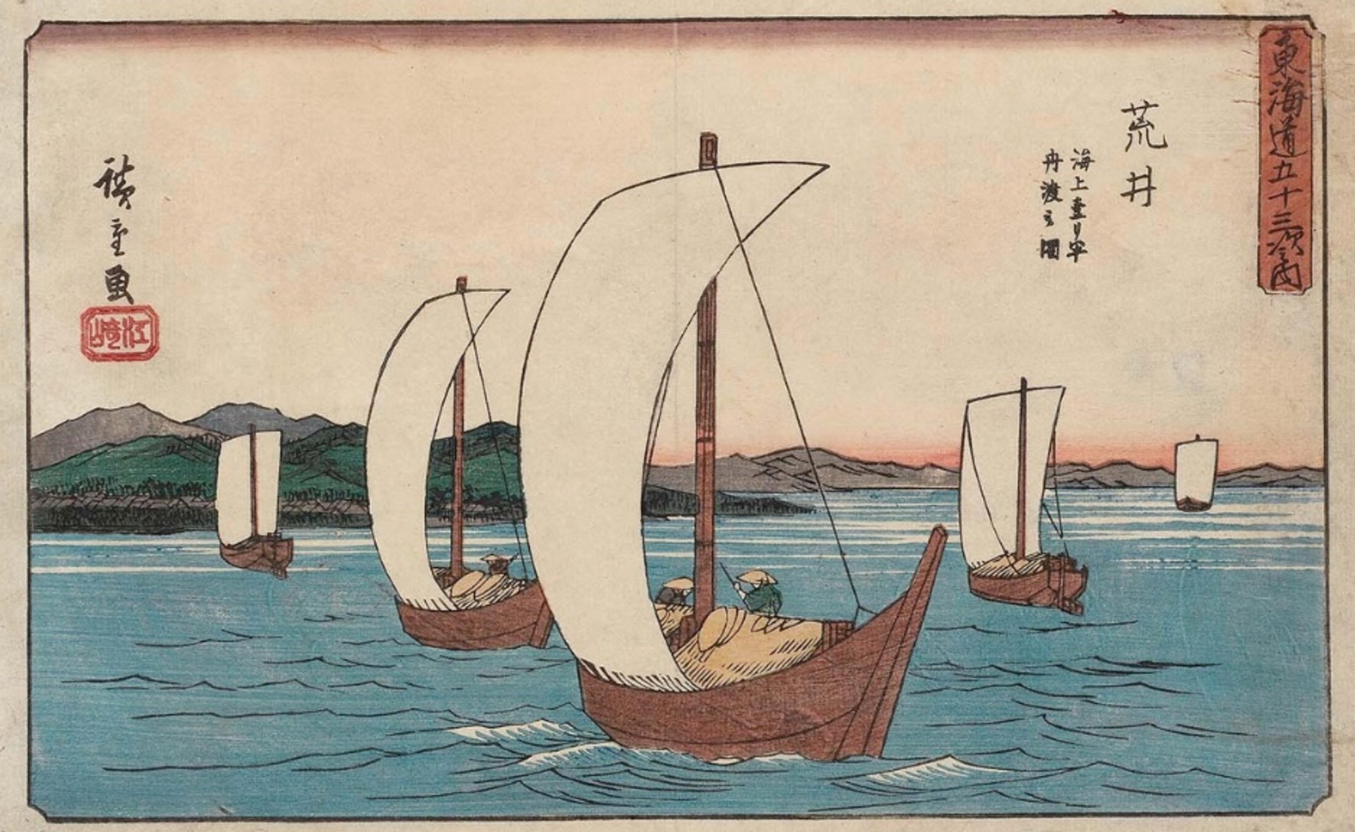Utagawa Hiroshige’s Arai: View of the Mile-and-a-Half Sea Ferry from the series The Fifty-three Stations of the Tōkaidō Road (1841–44)
