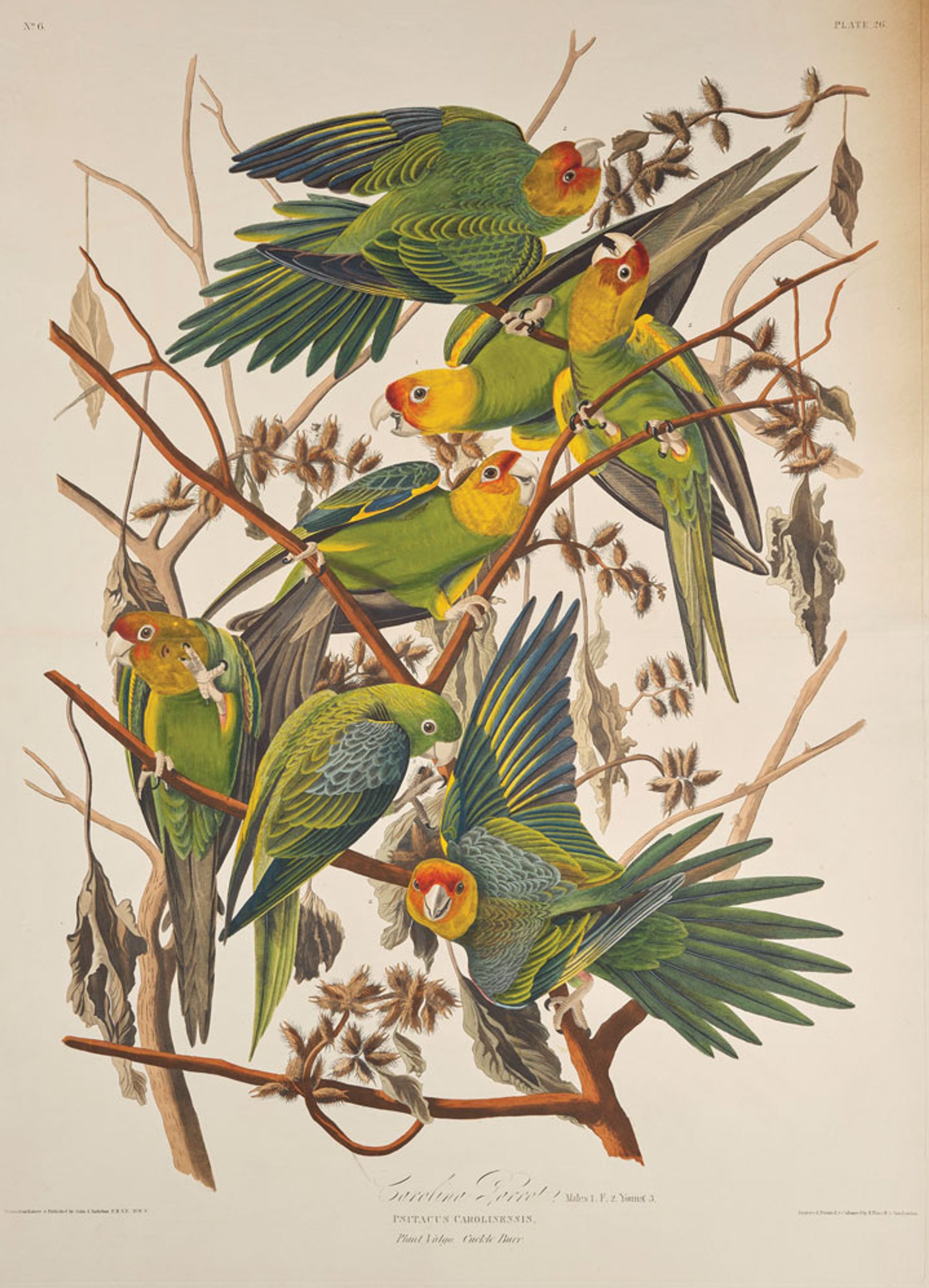 One of Audubon’s prints depicting the now extinct Carolina parakeets © National Museums Scotland