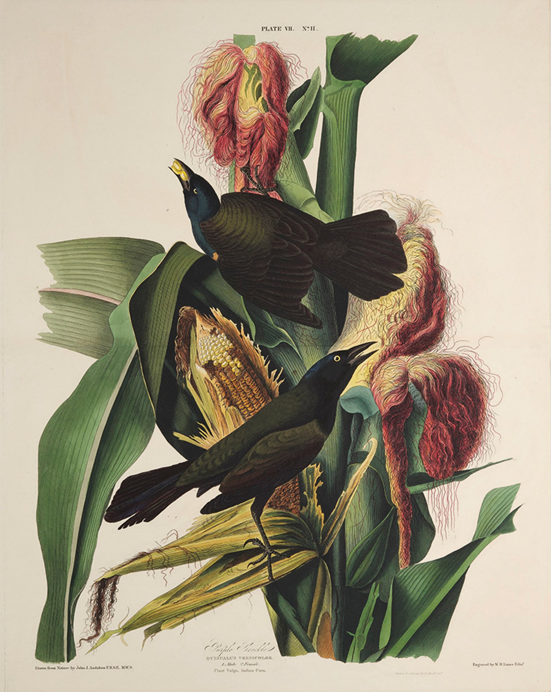 Purple grackles is one of the 435 hand-coloured prints in Birds of America © National Museums Scotland