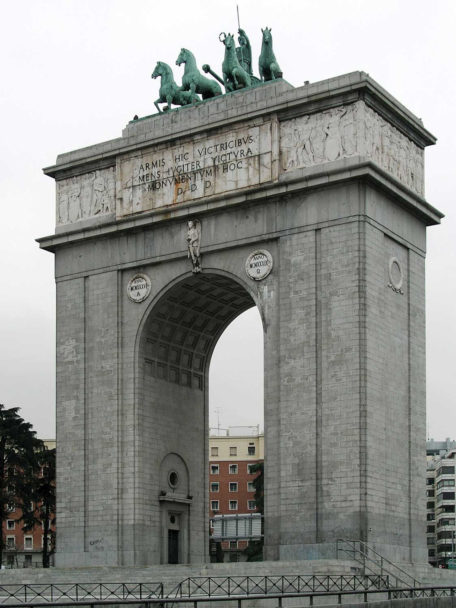 Madrid’s Victory Arch, built to commemorate the victory of Franco’s troops in the 1936 Battle of Ciudad Universitaria during the Spanish Civil War, is yet to be removed