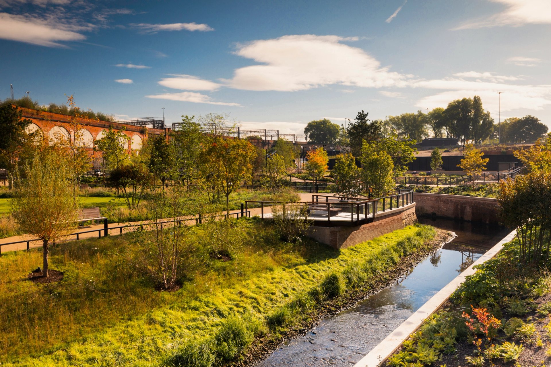 The River Medlock in Mayfield Park in Manchester, the setting for artist Risham Syed's Each Tiny Drop © Richard Bloom, courtesy Manchester International Festival