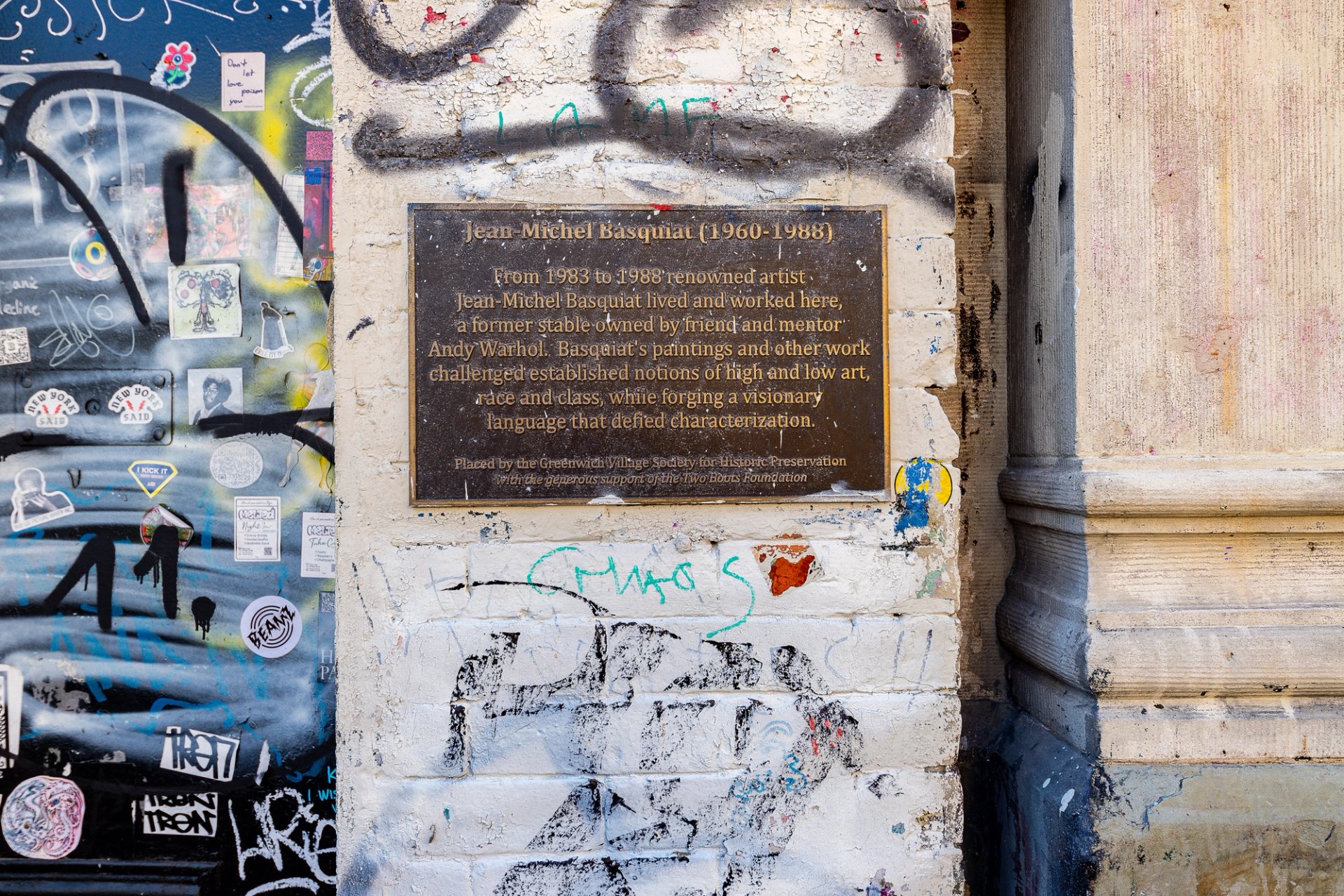 The 6,600 sq. ft building was once owned by artist Andy Warhol, who rented the space to Basquiat starting in 1983. Basquiat lived and worked there for five years, up until his death there at age 27 of an accidental heroin overdose on 12 August 1988. The Greenwich Village Society for Historic Preservation installed a plaque on the building in 2016 commemorating Basquiat, stating that the late artist “challenged established notions of high and low art, race and class, while forging a visionary language that defied characterisation”.