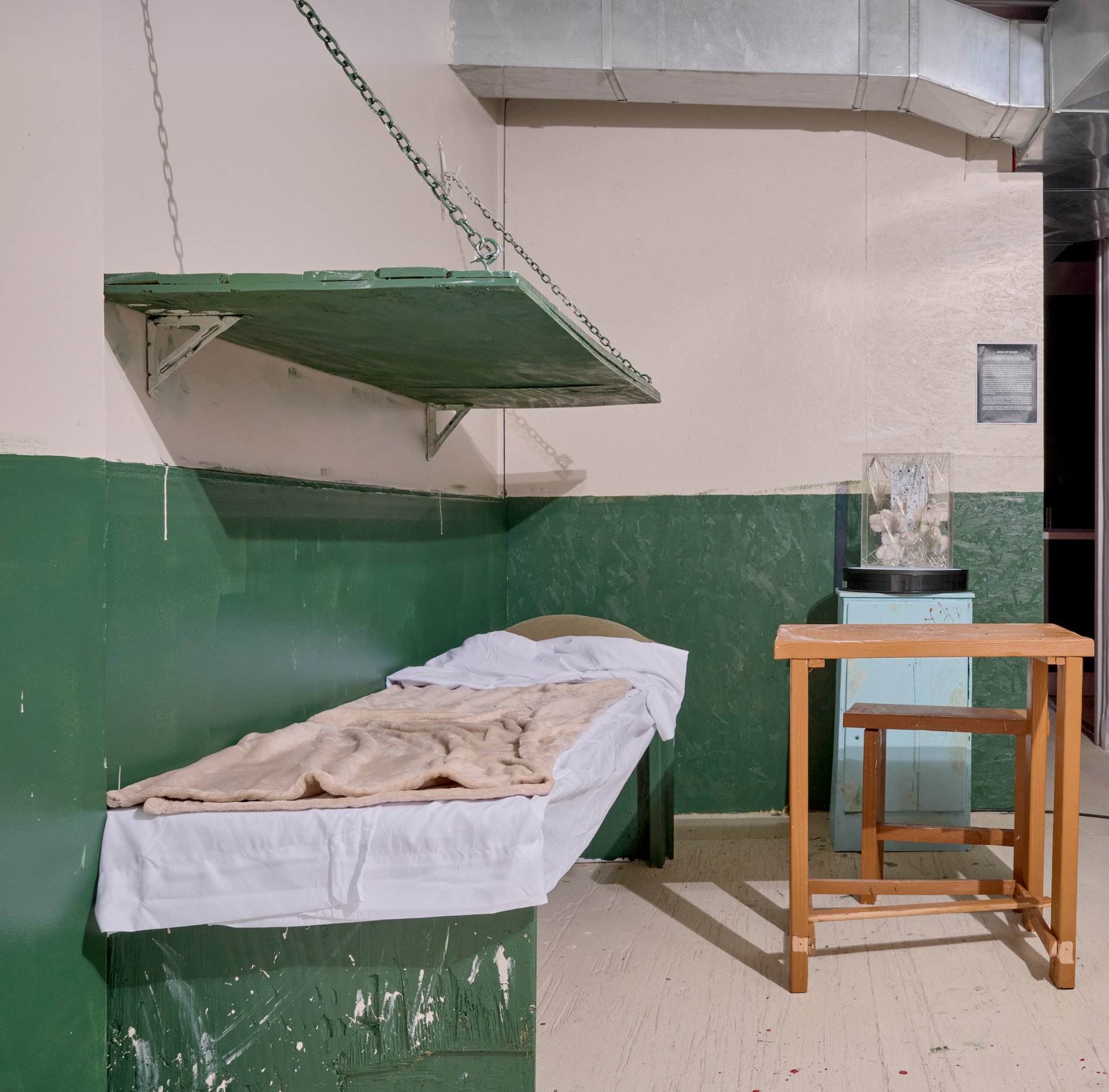 Installation view of Pussy Riot/Nadya Tolokonnikova: Putin's Ashes featuring a re-creation of Tolokonnikova's penal colony cell at Container, Santa Fe, New Mexico Photo by Molly O'Brien
