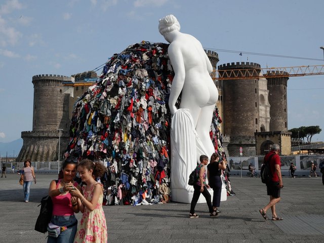 The artist has produced several versions of Venus of the Rags, which contrasts the beauty and timelessness of classical sculpture with contemporary consumerism. The version unveiled on June 28 was part of a programme called Contemporary Naples, initiated by the city and curated by Vincenzo Trione. The aim was to bring less frequented parts of the city to life with art, Gaetano said at the inauguration of the work.