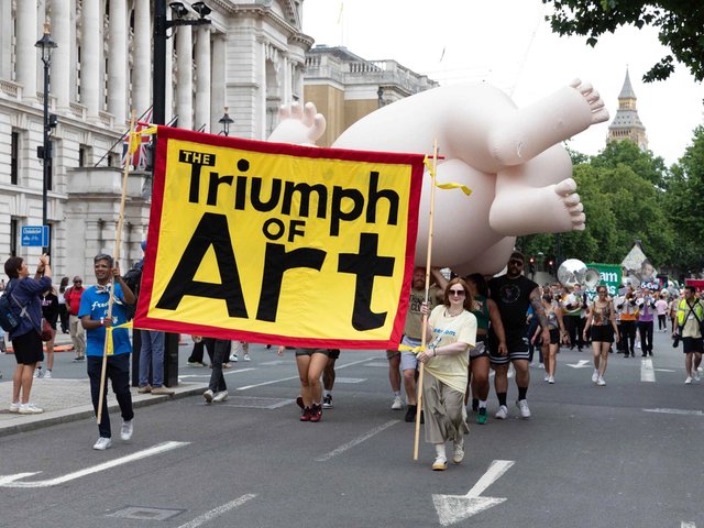 A photo by Dennis Hutchinson taken of Street alongside his father in 1973—showing the wrestler in outrageous garb alongside the miners at Blaenau Gwent colliery—made an impact on the artist. “Adrian Street is a wrestler I first became aware of through a photograph showing him with his father, which seemed to me possibly the most important photograph taken post-war. It encapsulates the whole history of Britain in that period, of our uneasy transition from being a centre of heavy industry to a producer of entertainment and services,” says Deller.