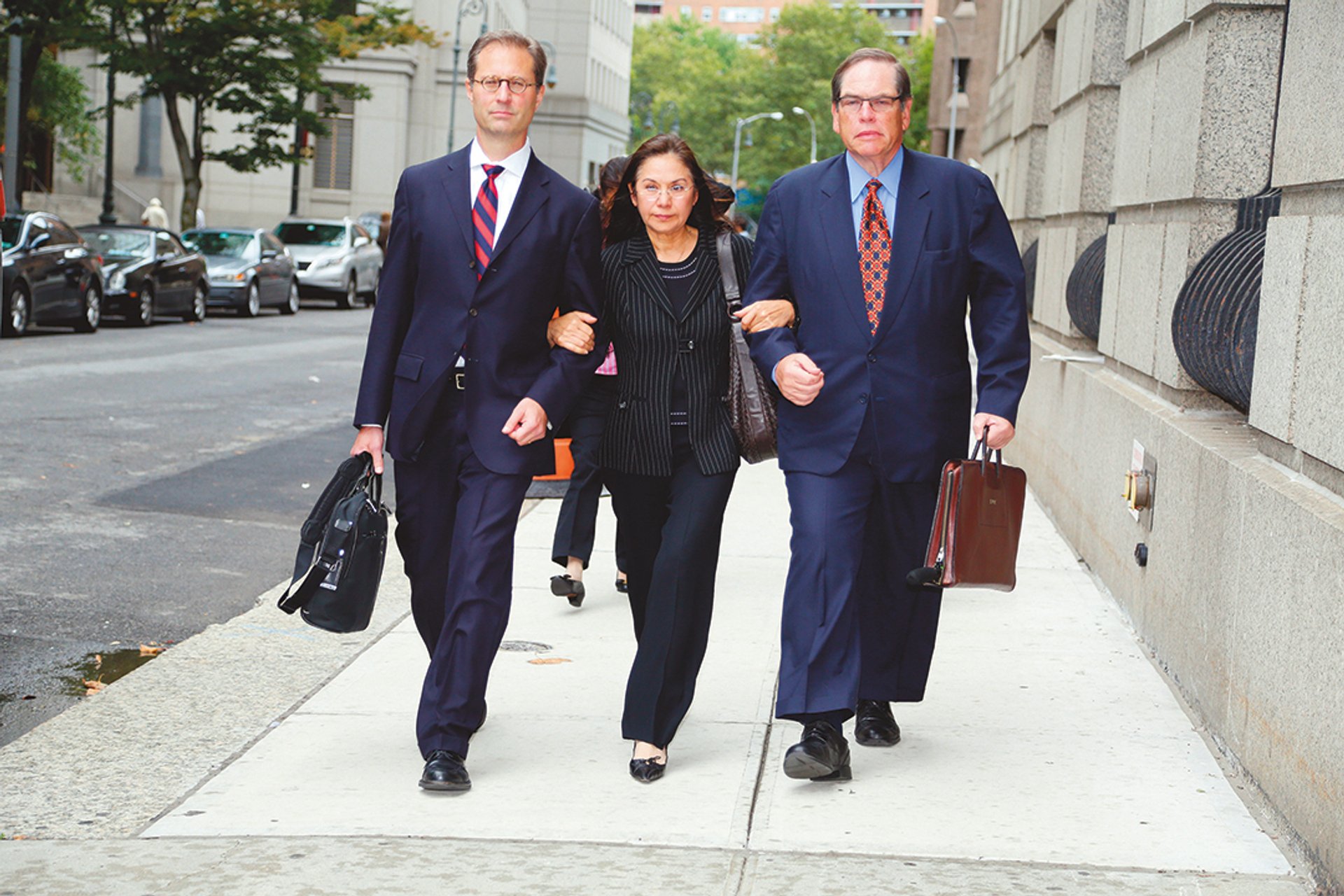 Glafira Rosales (centre) served 82 days for her part in an $80m fraud involving Knoedler Gallery, the judge acknowledging she had suffered domestic abuse Photo: Jefferson Siegel/NY Daily News via Getty Images