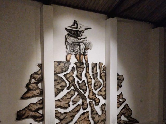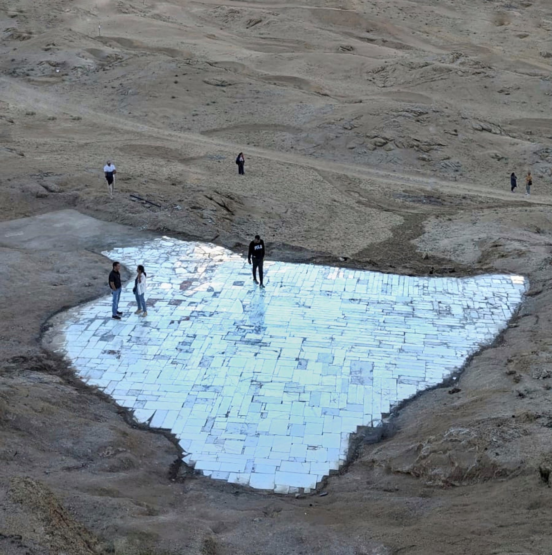 It appears that this is not due to disinterest, but self-censorship. One of the Ladakhi artists taking part in the exhibition, Tsering Gurmeet Kungyam, shows an expansive mirrored floor installation meant to resemble a lake. It pertains to local folklore, and, of course, water scarcity. Kungyam says that he wants to make work that is even more explicitly political around these issues, "but India's current government is so bad they can do anything to harm a single artist".