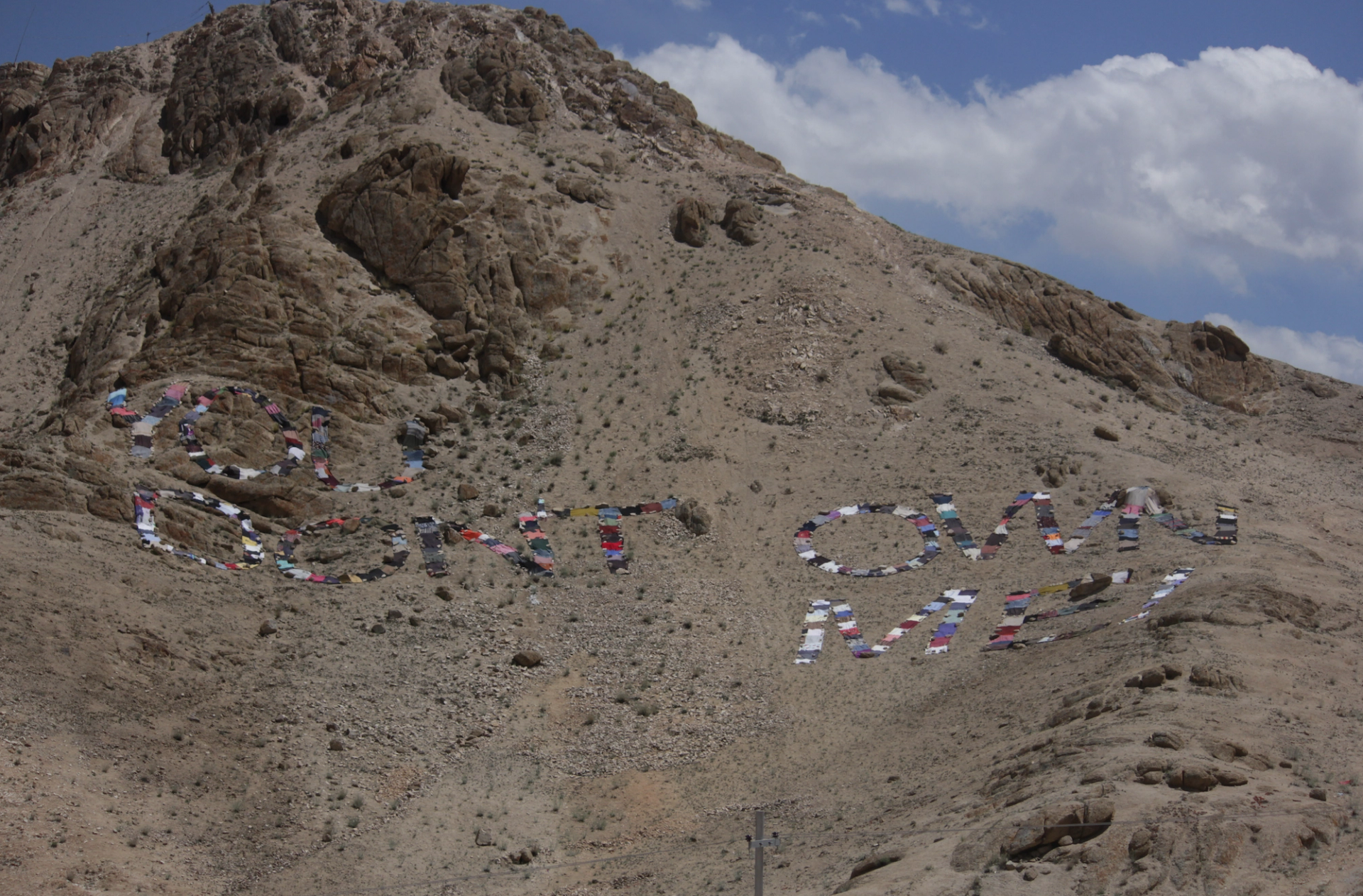 Many of the works in sā Ladakh convey the ‘what’ of the region’s current environmental crisis, and, by addressing unsustainable tourism and building projects, to some extent the ‘who’. Less immediately apparent is the ‘why’ behind this rampant development. The clearest example of this comes from the Delhi-based artist Vibha Galhotra, whose hillside textile installation arranges secondhand saris and other garments destined for landfill to spell: “YOU DON’T OWN ME”. The work asserts that our current era of "global boiling" stems from an imbalanced consumption of natural resources by those in power, Galhotra says. It also broaches Ladakh’s position as "a border land under political threat", providing an important link between the show’s expressed ideals and the region’s charged politics.