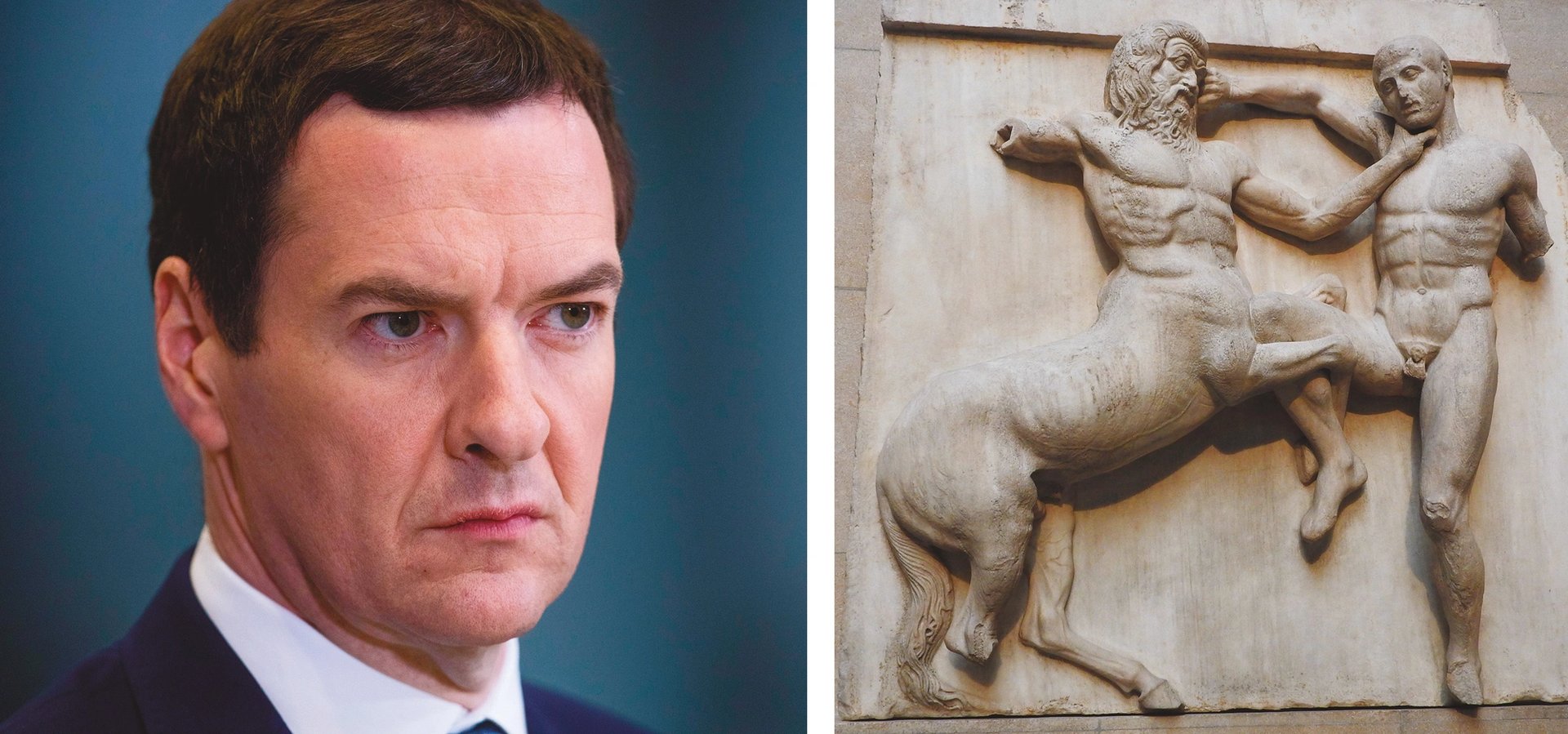 Left: George Osborne, chair of the British Museum’s trustees, claims he was only made aware of the thefts this year, but a gem expert wrote to him with concerns in October 2022 / Right: the thefts are likely to strengthen the resolve of the Greek government to push for the return of the Parthenon Marble
