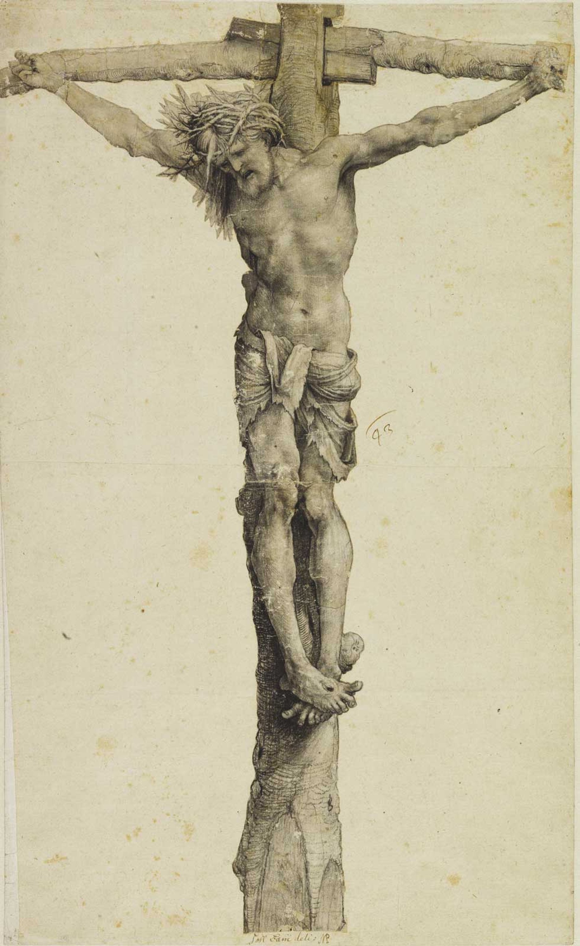 Matthias Grünewald’s exquisite charcoal drawing of around 1520, showing the figure of Christ on a rough-hewn cross