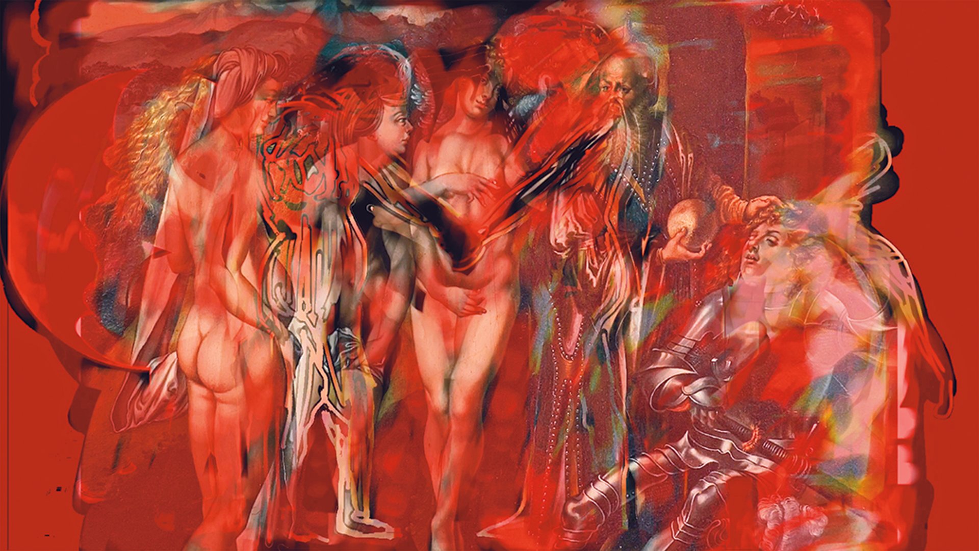 This approach is foregrounded in the exhibition’s eponymous work, a nine-channel video installation that envelops viewers with a 360-degree panorama of simultaneous animations in which images of famous paintings from the National Gallery are digitally defiled using Malani’s characteristic technique of effacement and erasure.