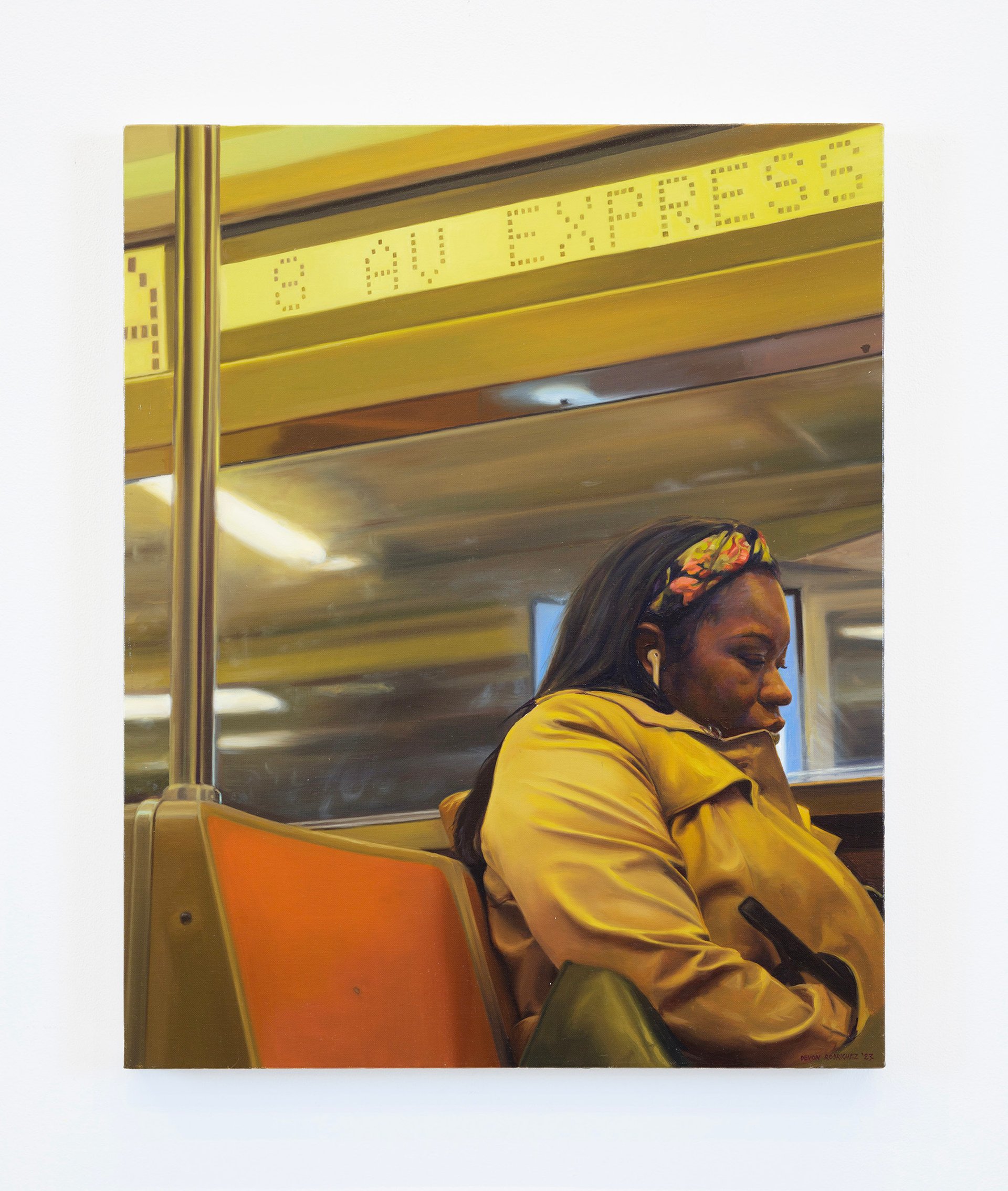 The pop-up exhibition, opening today (6 September) in Chelsea, features 12 new paintings and five drawings expanding his Subway series, including new works showing travellers on transit systems in cities including London, Paris and Barcelona.