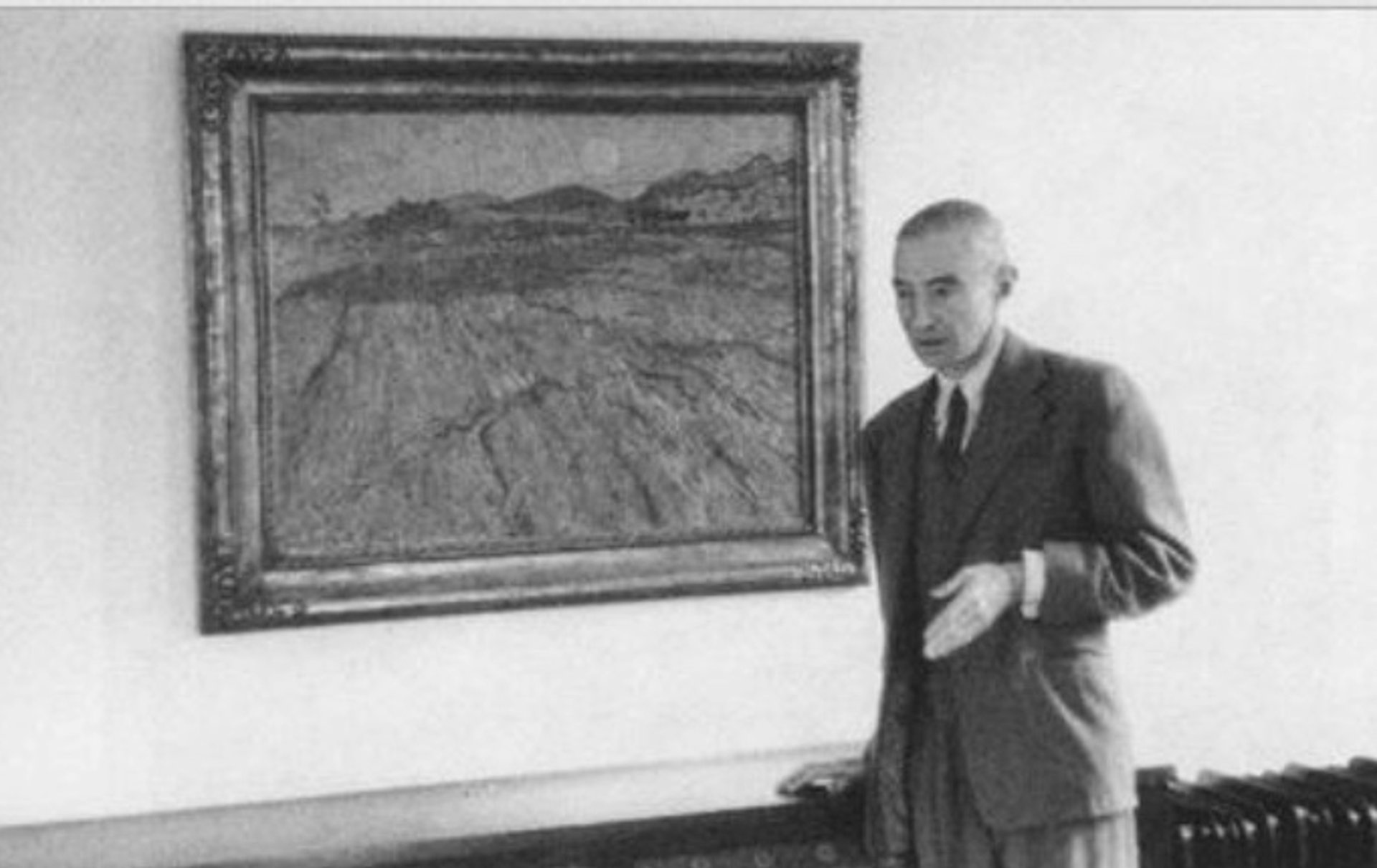 Robert Oppenheimer in 1958 with Van Gogh’s Wheatfield at Sunrise (November 1889)