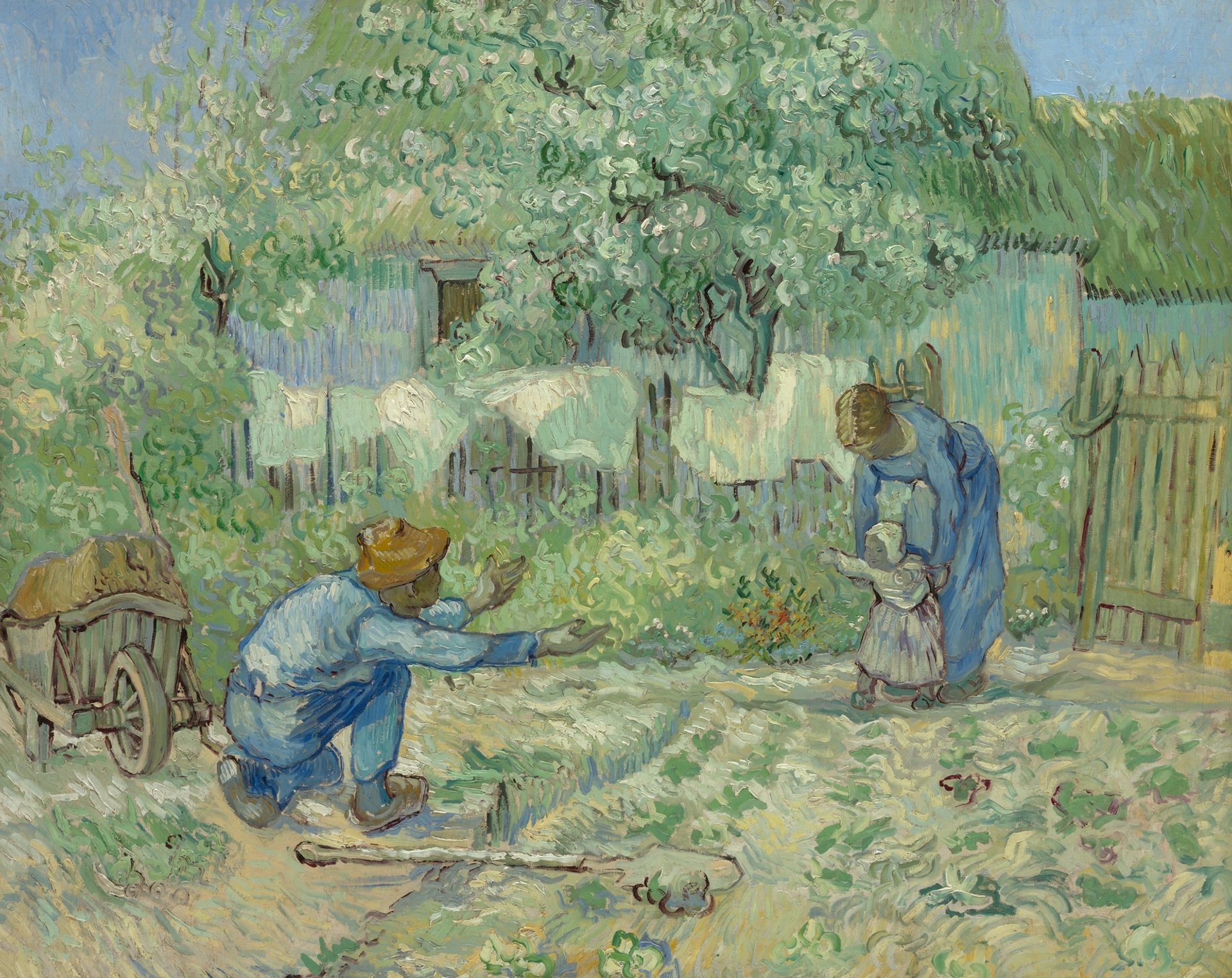 Oppenheimer’s father also owned two other Van Goghs. First Steps, after Millet (January 1890) is a painted version of a print by the French artist Jean-François Millet, a touching image of a young child learning to walk. Van Gogh made it at the asylum, when he was in fragile health after a mental attack and he was unable to go outside to paint.