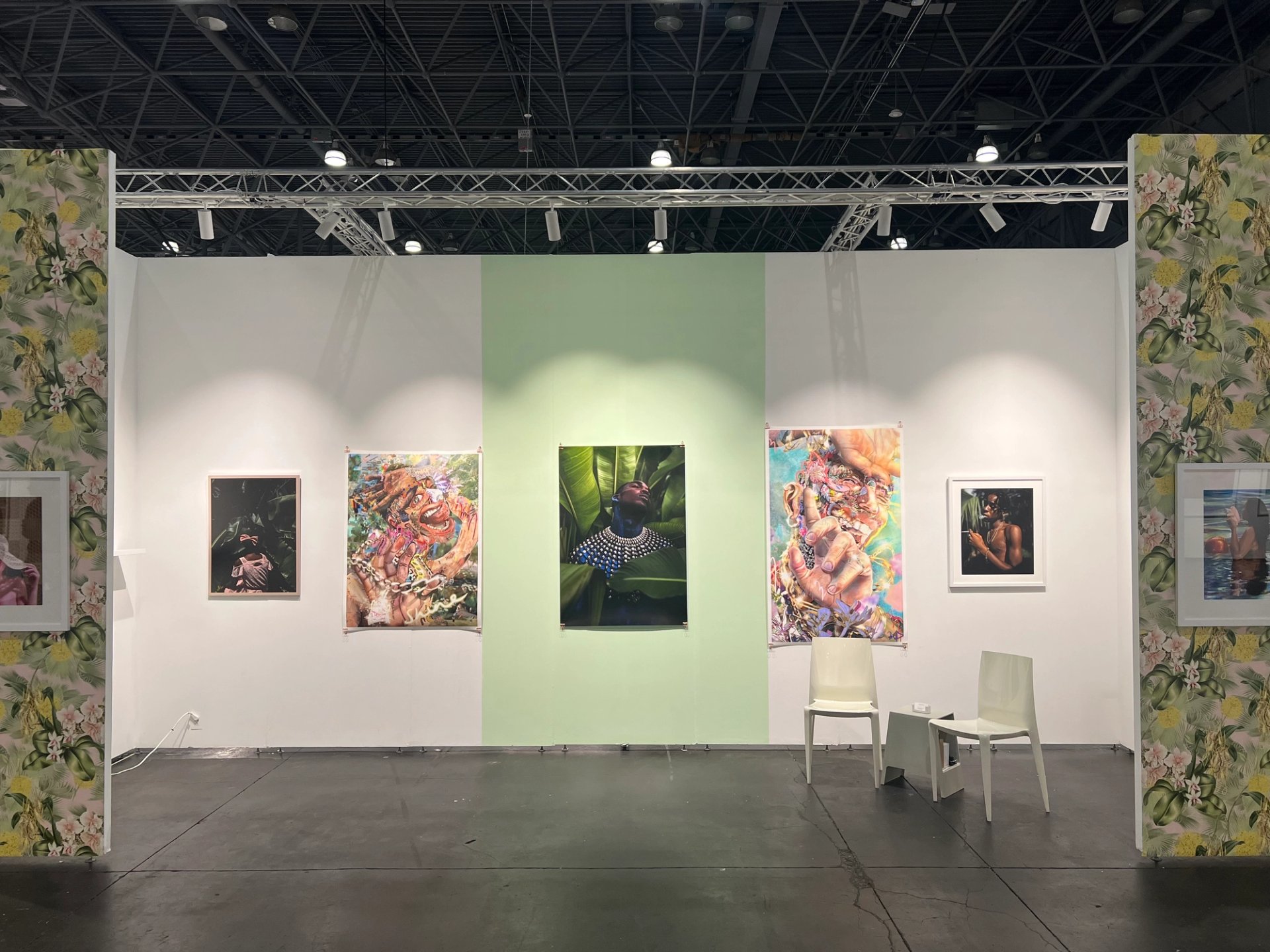 Tern pursues this goal across two stands at Photofairs, each featuring works conceived to counter stereotypical ideas of tropicality. The first displays a not-for-sale installation by Tiffany Smith that offers visitors a moment of respite in what the gallery describes as a “wicker throne chair” surrounded by artificial foliage, soothing light and crystals. The main stand features still photos, digital assemblages and video pieces on Polaroid-size screens by Smith and fellow Caribbean artists Steven Schmid, Rodell Warner and Melissa Alcena. Prices for works in the latter stand range from $1,750 to $4,200.