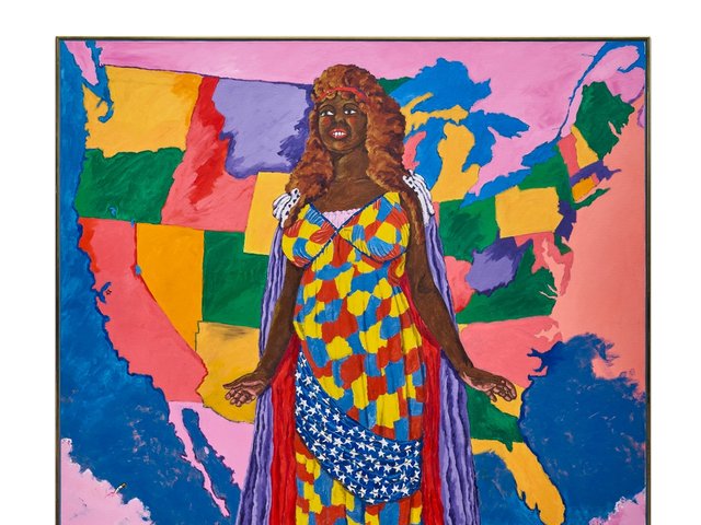 The special single-lot auction was held to coincide with The Armory Show, New York’s biggest art fair. The painting, 1919 (1980), is a colourful, large-scale canvas portraying a map of the continental United States flanked by figures representing Colescott’s parents. According to Bonhams, the artist used the painting to weave together the history of race in the US and his own experience as a light-skinned Black American man who could pass as white. The painting served as a focal point of the Contemporary Arts Center Cincinnati’s 2019 retrospective Art and Race Matters: The Career of Robert Colescott, which later travelled to Portland, Sarasota, Chicago and then the New Museum in New York in 2022.