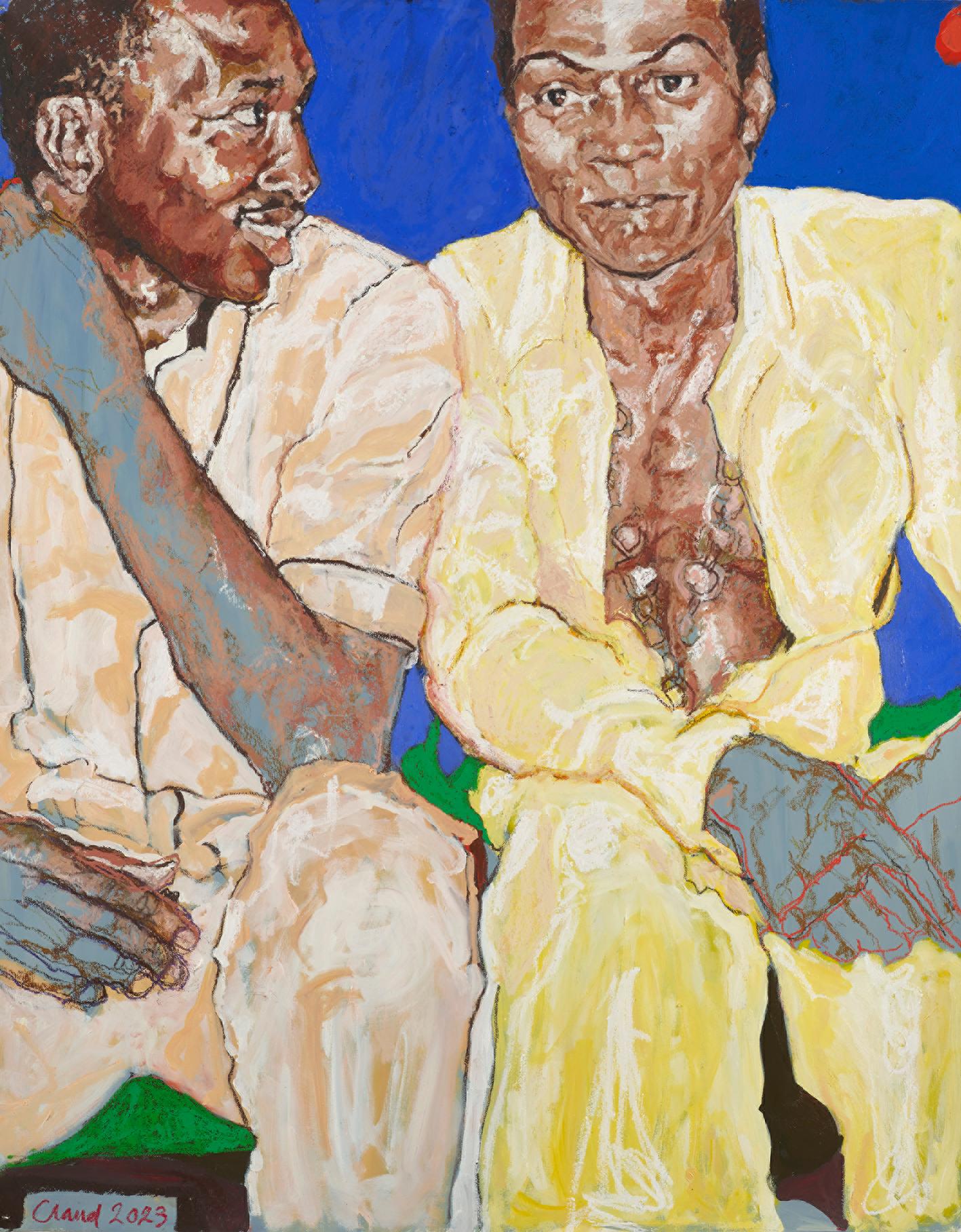 Claudette Johnson's Friends in Pink and Yellow on Cobalt (2022)