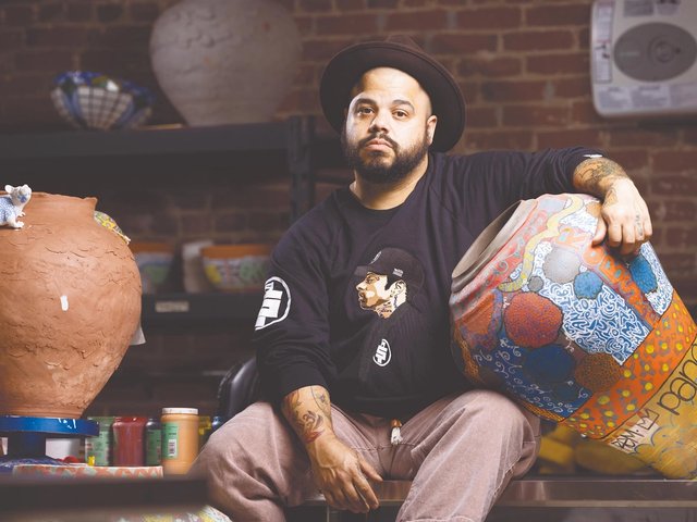 Lugo, who is based in Philadelphia, takes a very different approach to honouring histories and legacies. His ceramic sculptures use forms that were long dismissed as craft—ornate pots, vases and other vessels—to memorialise people from his own life and important historical and cultural figures, from murdered rappers to Civil Rights activist Sadie Tanner Mossell Alexander. His current solo exhibition at R & Company in New York, The Gilded Ghetto (until 27 October), reinterprets the imagery of ancient Greco-Roman vases to chronicle the experiences of Afro-Latino communities.