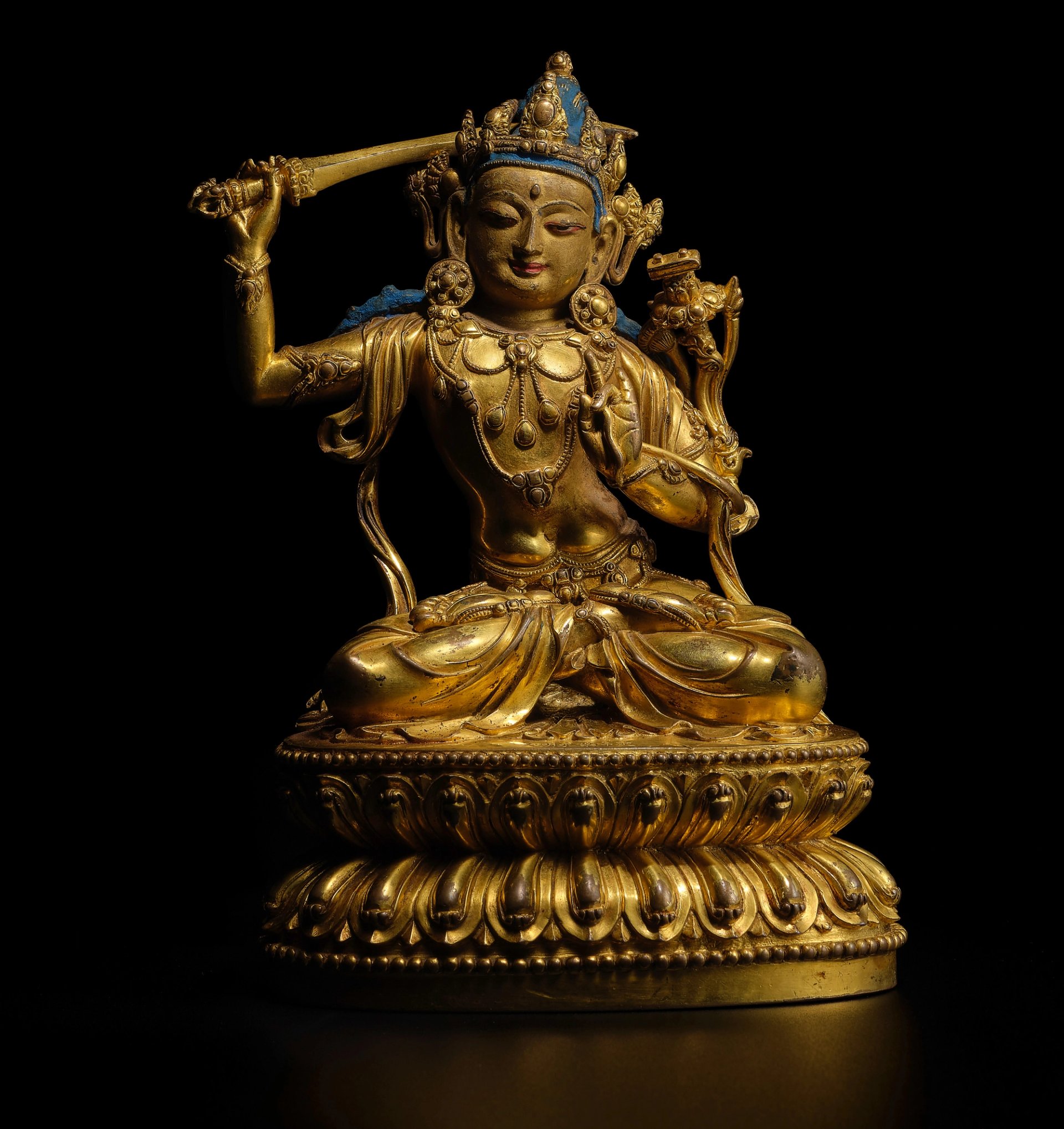 Gilt copper alloy figure of Manjushri, 15th century